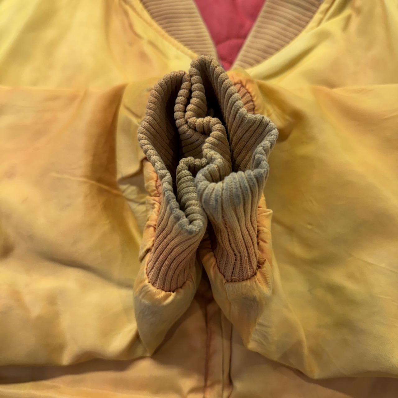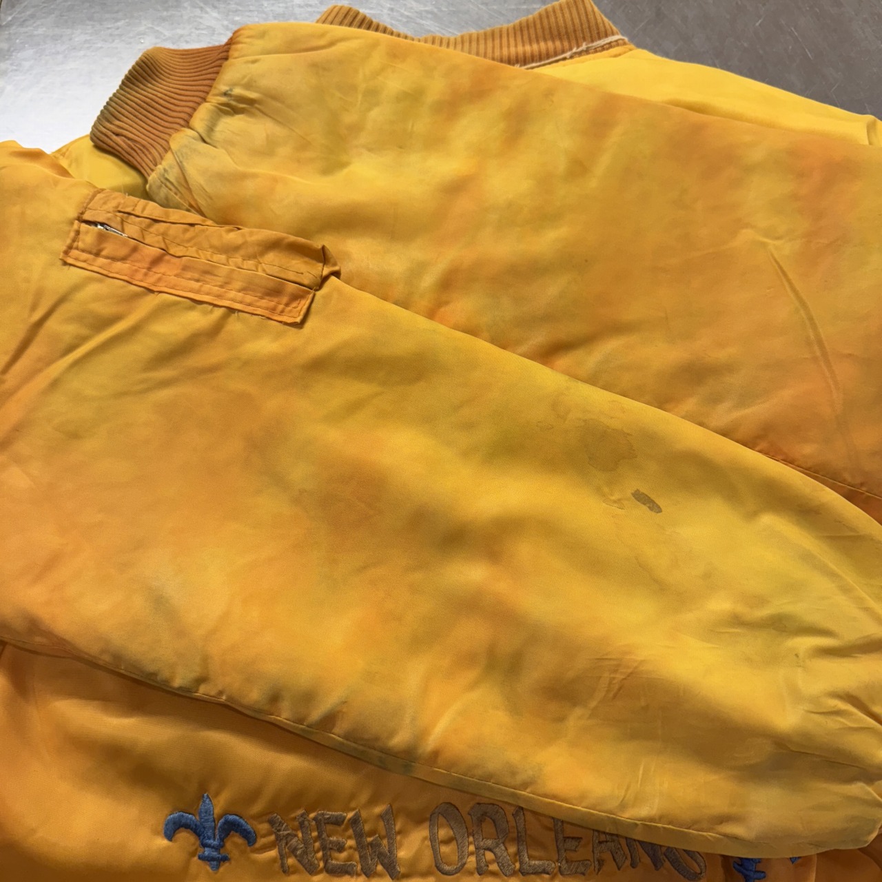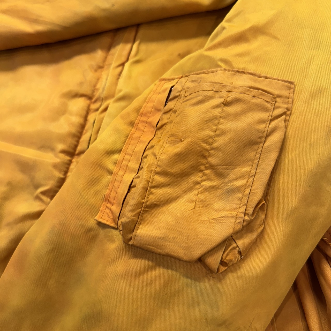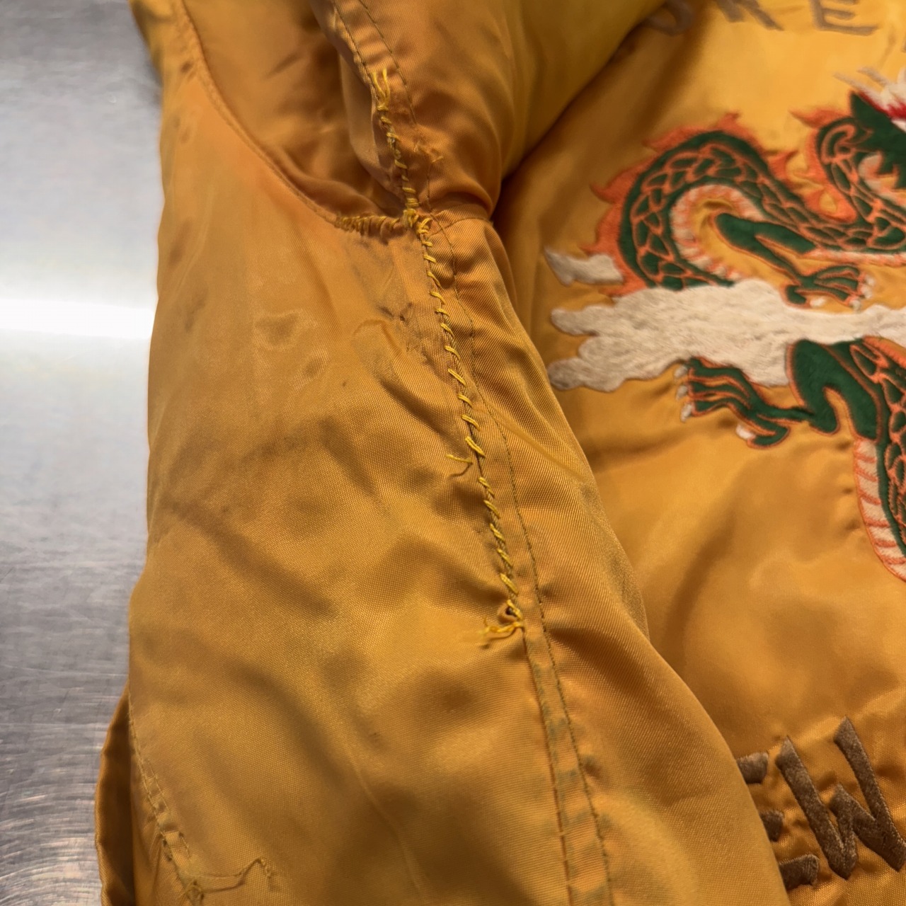 - 画像の様に脇下リペア、薄汚れやほつれ等ございますが問題なく着用可能な状態です。