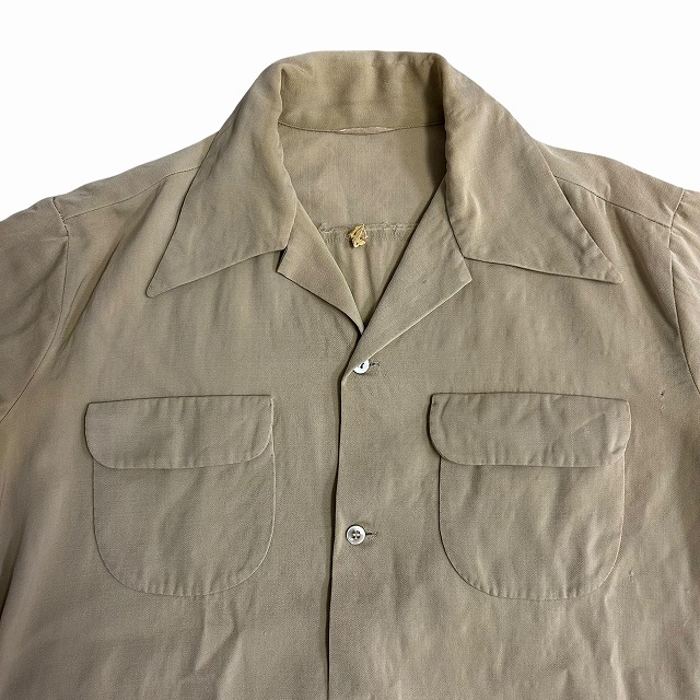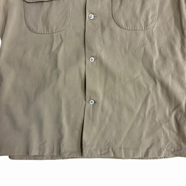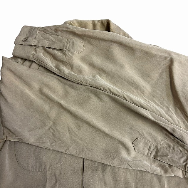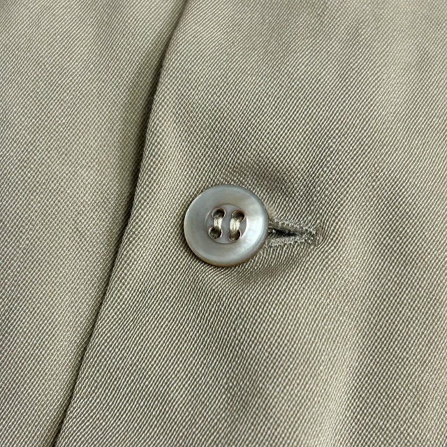 「ベージュ、ギャバジン織り、ポケットフラップ付」