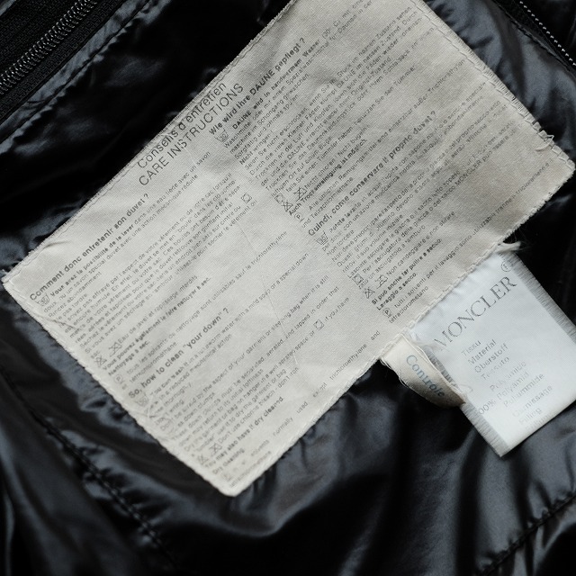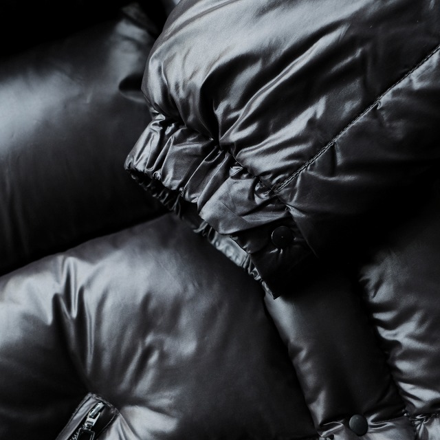 現行モデルとは全く違うアウトドアな雰囲気を感じることが出来るディテールです。光沢のあるシャイニーナイロンを使用し、通常の個体と異なるラグランスリーブ仕様。裾にはMONCLERの刺繍が入ります。