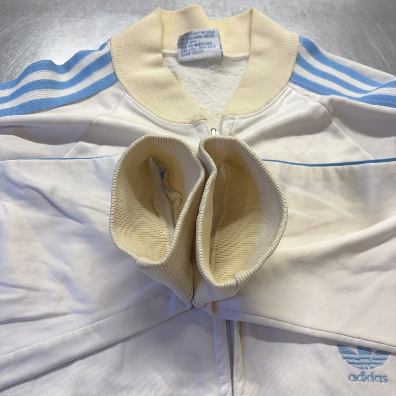 「USA製、ホワイト×サックス、サイズXL」