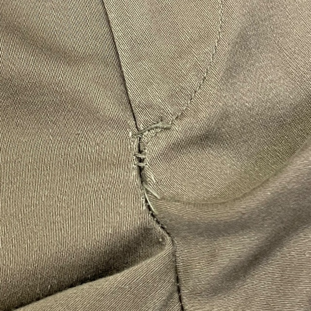 - 画像のように、汚れ、スレ、小傷があり、股やヒップの縫製部分にホツレや縫い目広がりがございます。