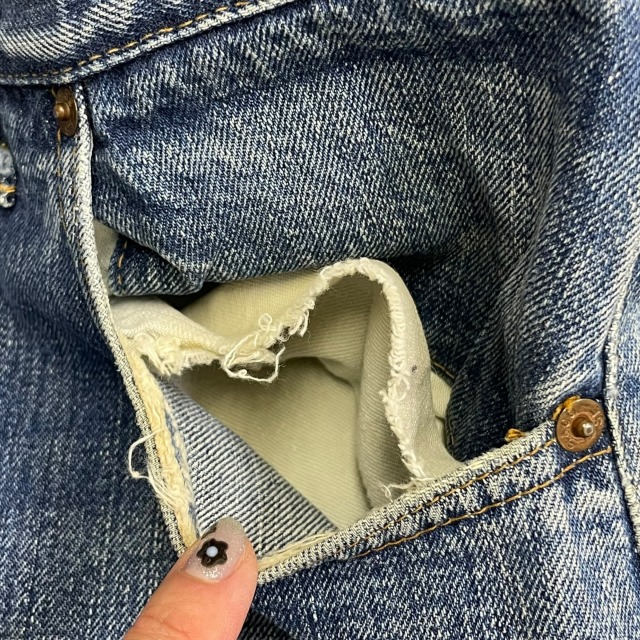 - 画像のように、汚れ、キズ、スレーキに破れがあり、前左腿付近にリペアがございます。