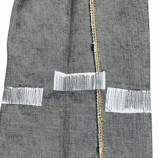 - 画像のように、キズ、汚れ、ステッチ抜けがあり、左脚に数ヶ所リペアがございます。