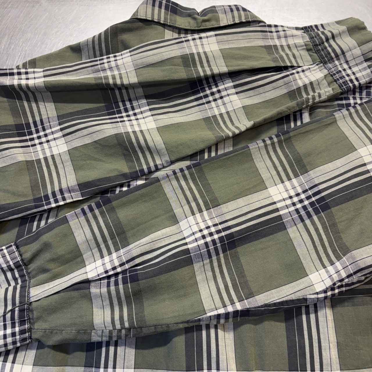 グリーンベースにホワイトとブラックのラインが入る好配色チェック!