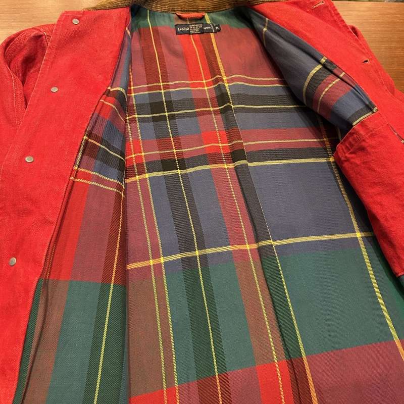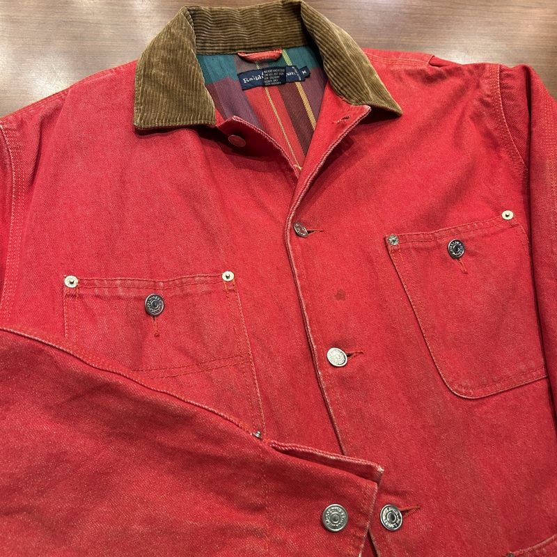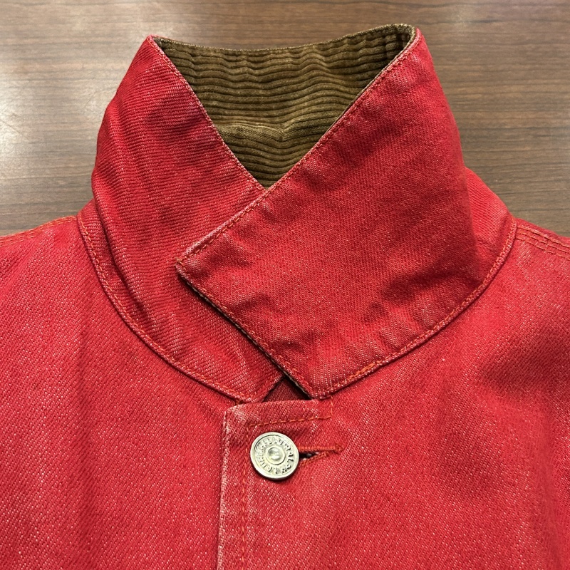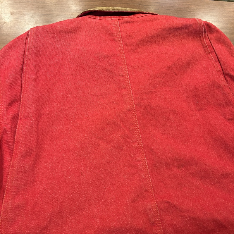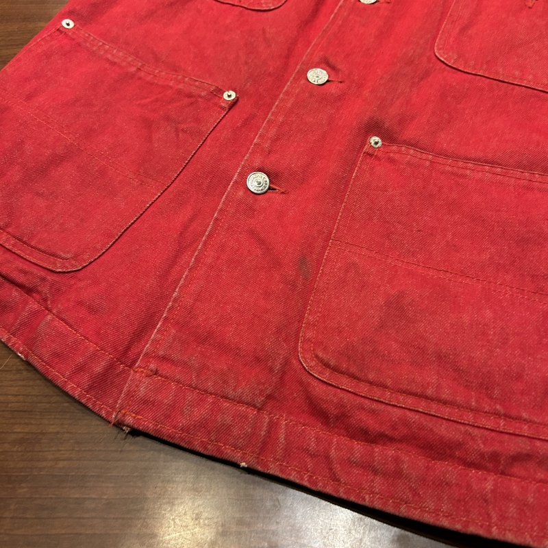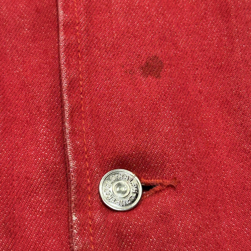 - デニム特有の色落ちやアタリ、スレ、前身頃や袖に汚れ、内ポケットのステッチ抜け等の着用感がございます。着用には問題無く古着慣れされた方におすすめです。