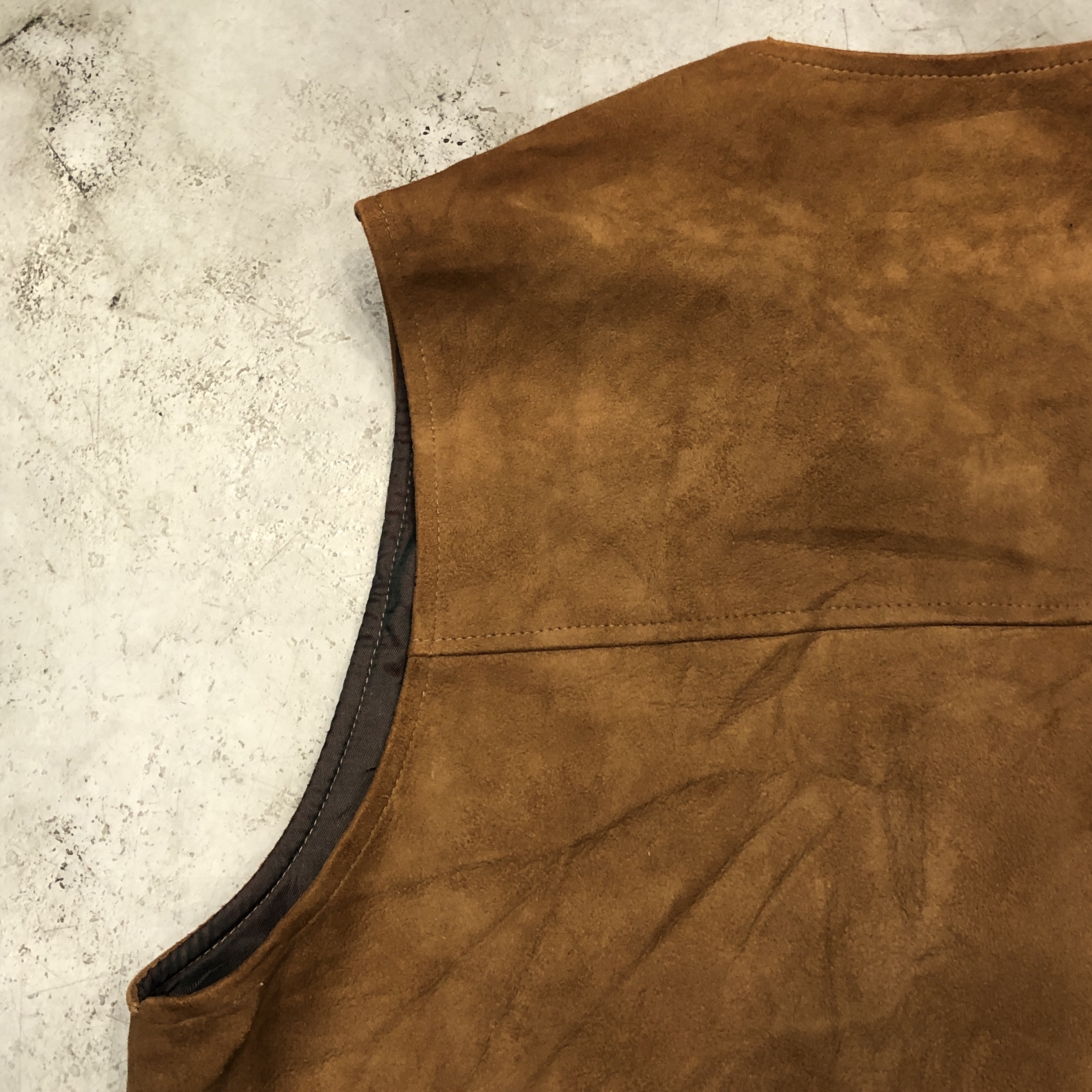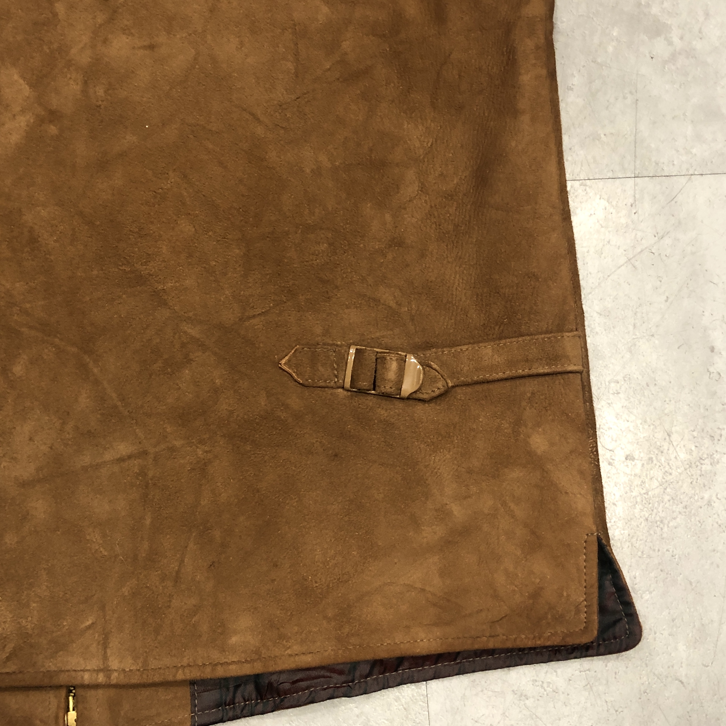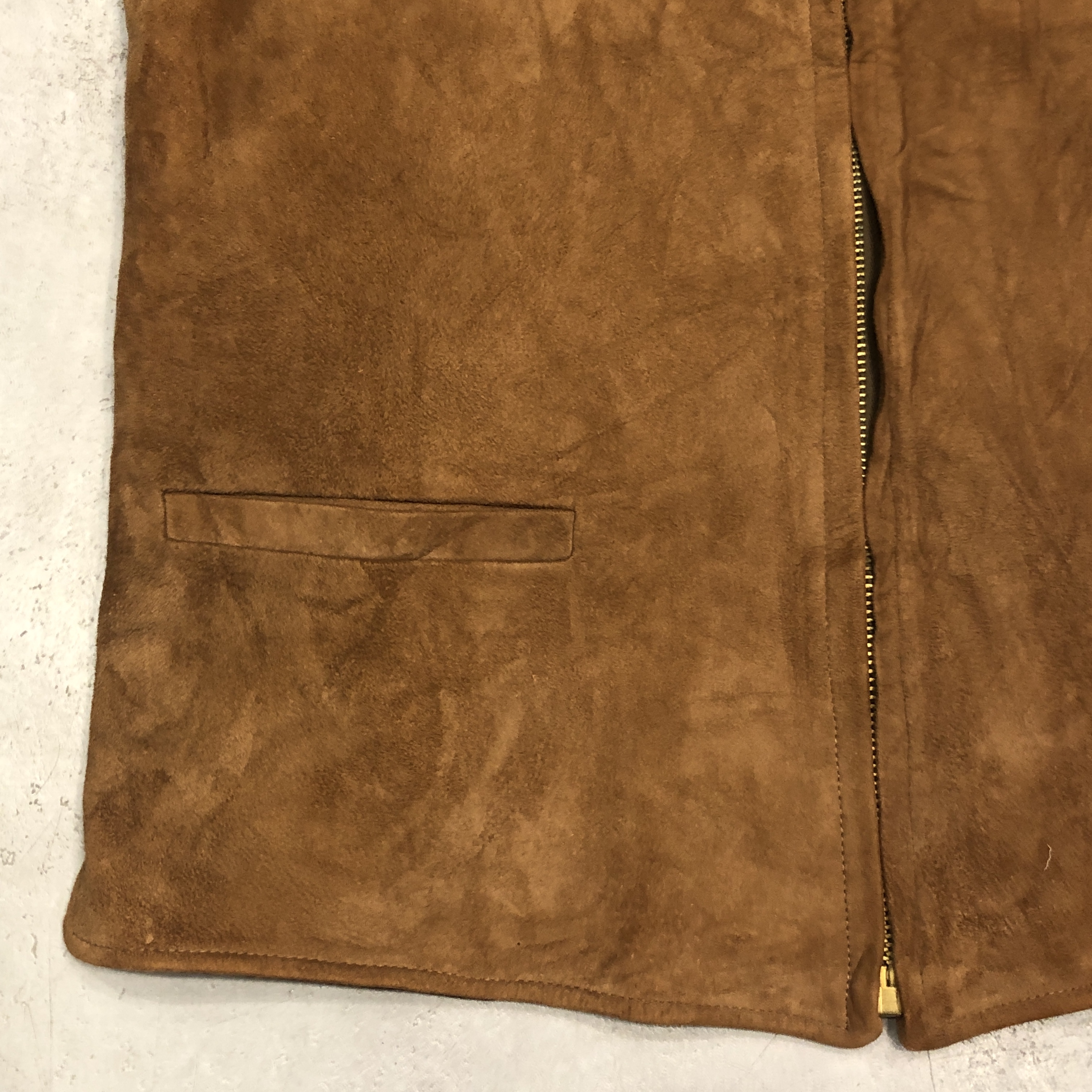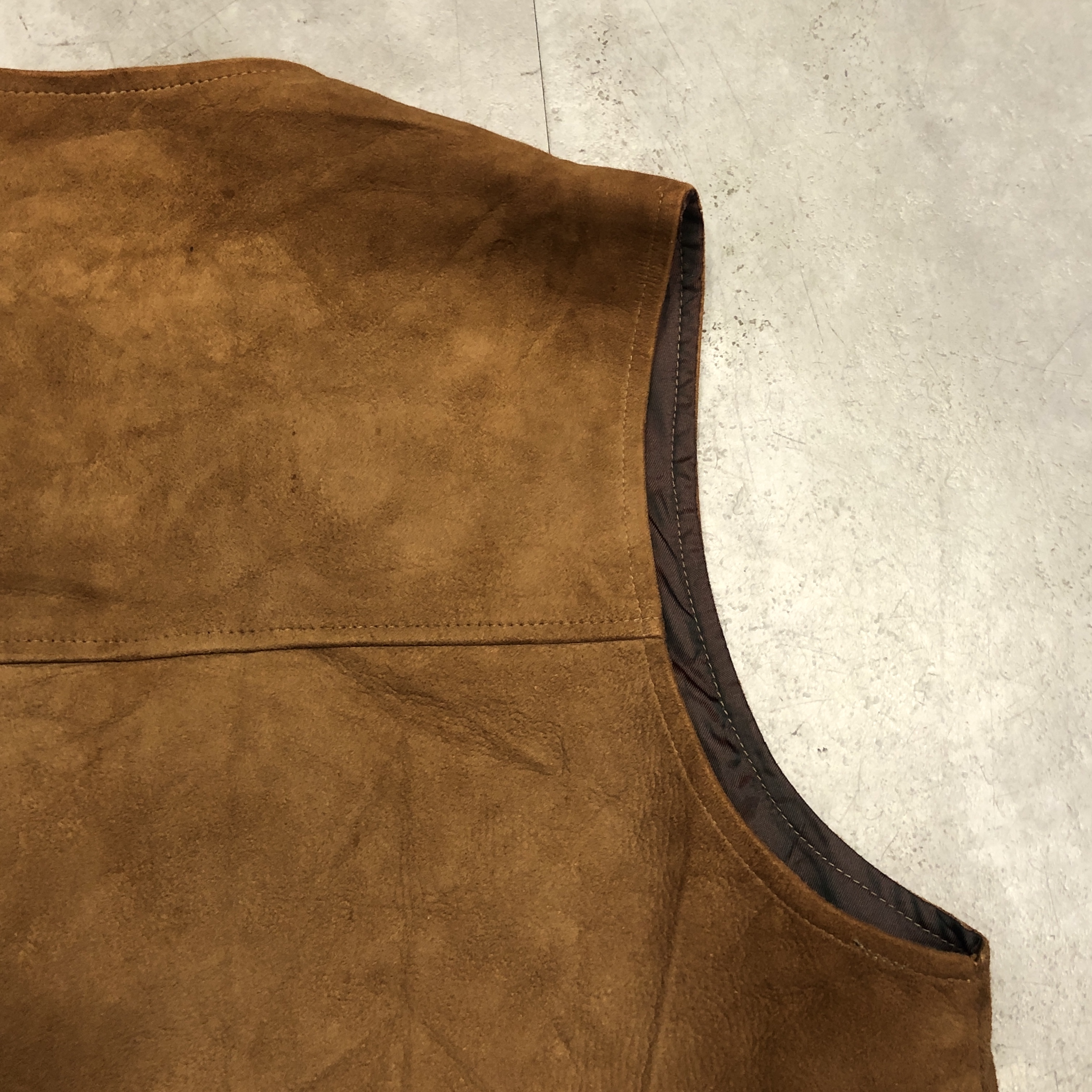 1960〜70年代製のヌバックベストが入荷しました。当時のA&Fといえば、現在のファッションブランドとは一線を画す、本格スポーツマンのための高級アウトフィッター。鹿革にも似た柔らかなヌバックレザーは着込むほどに身体に馴染み、擦れやオイルの染み込みさえも“味”として昇華していく極上の素材感です。フロントには真鍮製TALONジップ、背面にはシンチバック付きと、ディテールも実用一点張り。玉虫色に光るライニングとのコントラストもたまりません。ネルシャツの上からカウボーイ風に羽織るも良し、ウールジャケットの中に仕込んでアイビー風に決めるも良し。現行品では決して出せない渋みをまとった、大人のためのレザーベストです。