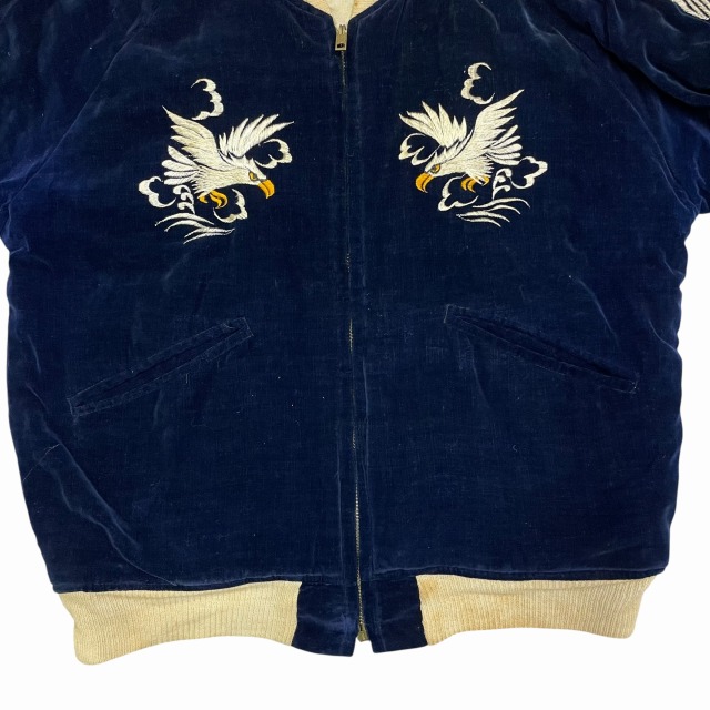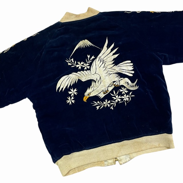 「別珍、ネイビー、鷲/龍/地図」