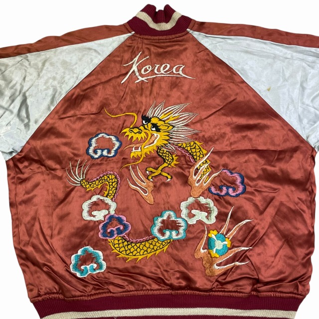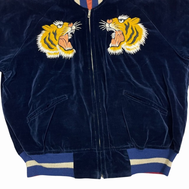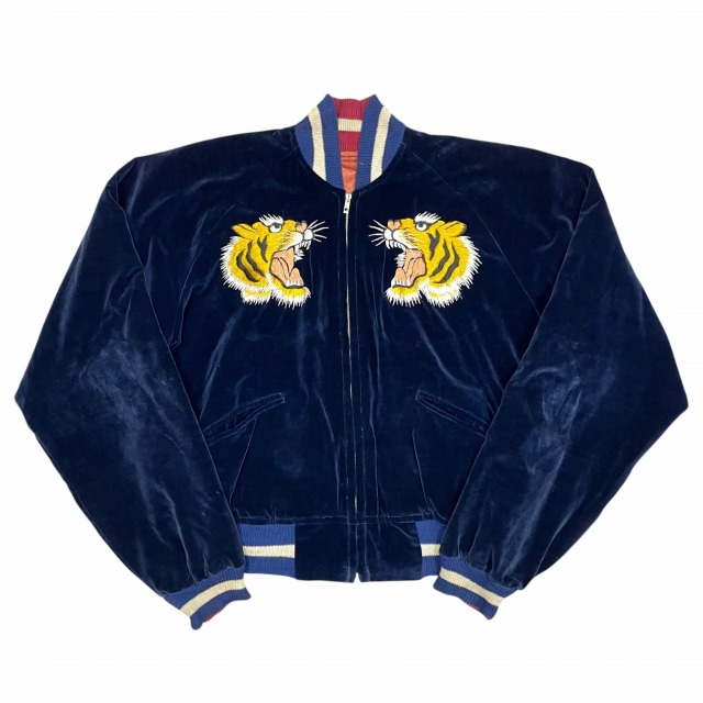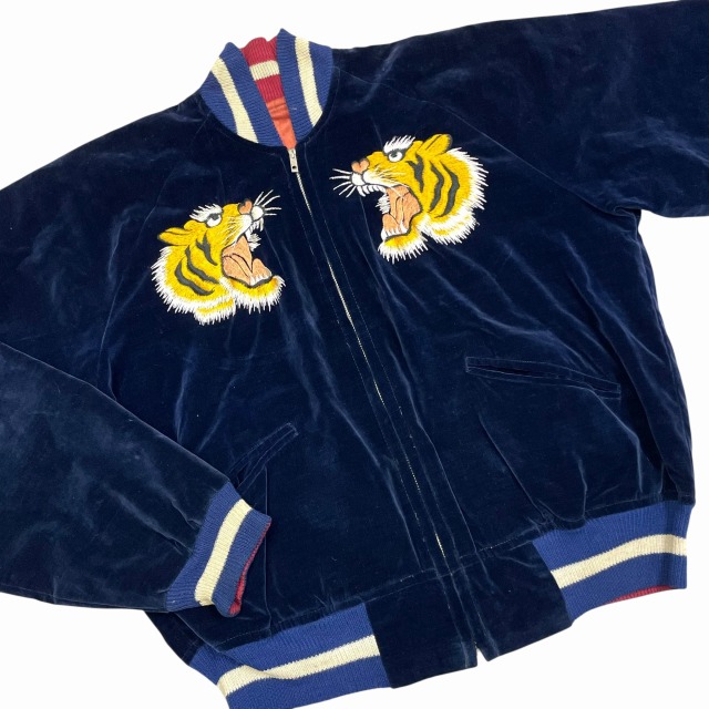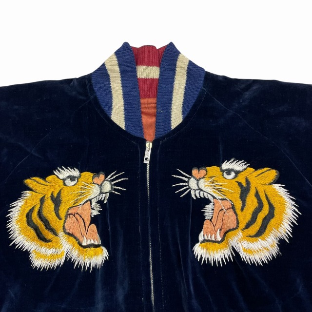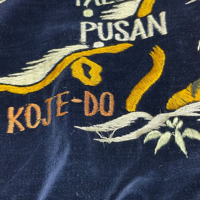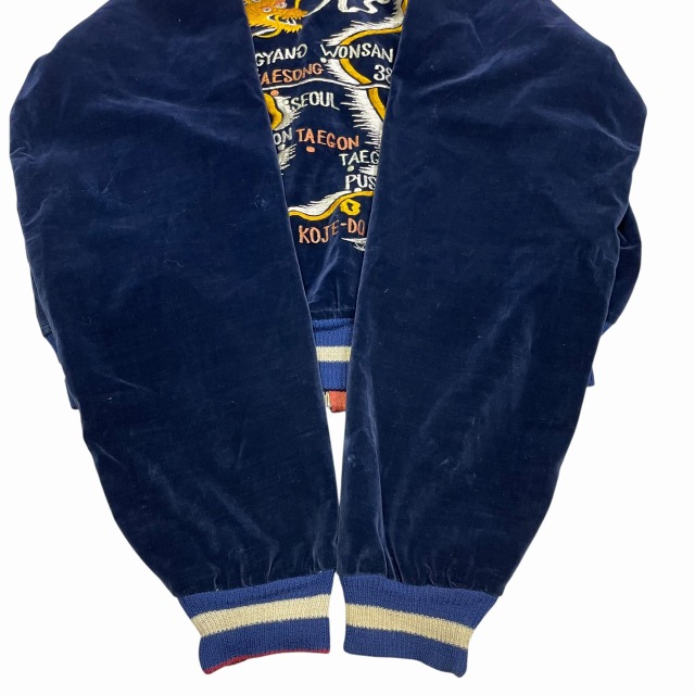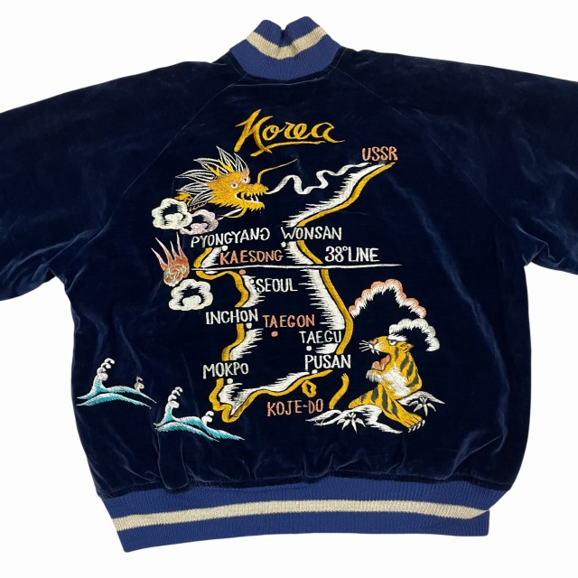 「別珍、ネイビー、KOREA、虎/龍/地図」