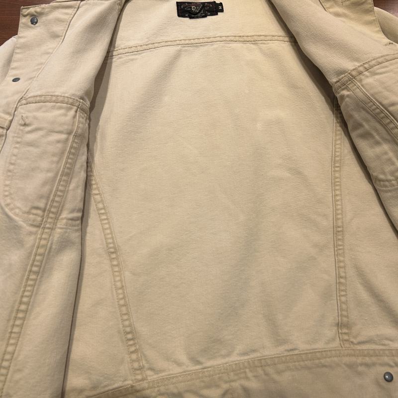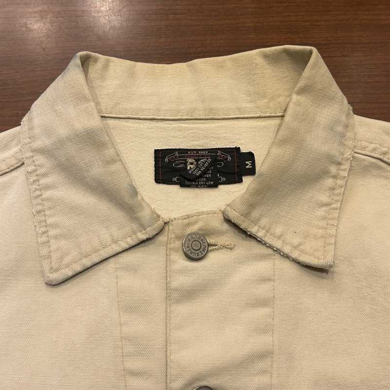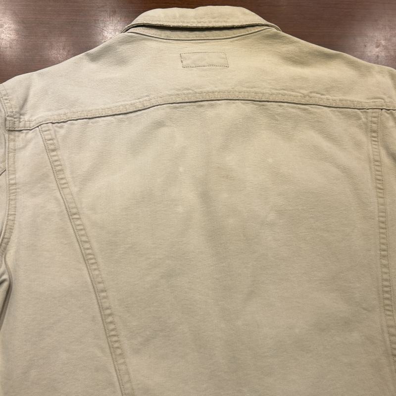 - 襟に汗染みや複数個所に細かな汚れ、スレやアタリ等の着用感がございます。その他に目立つ汚れやダメージは無く古着慣れされた方でしたら着用可能な状態です。