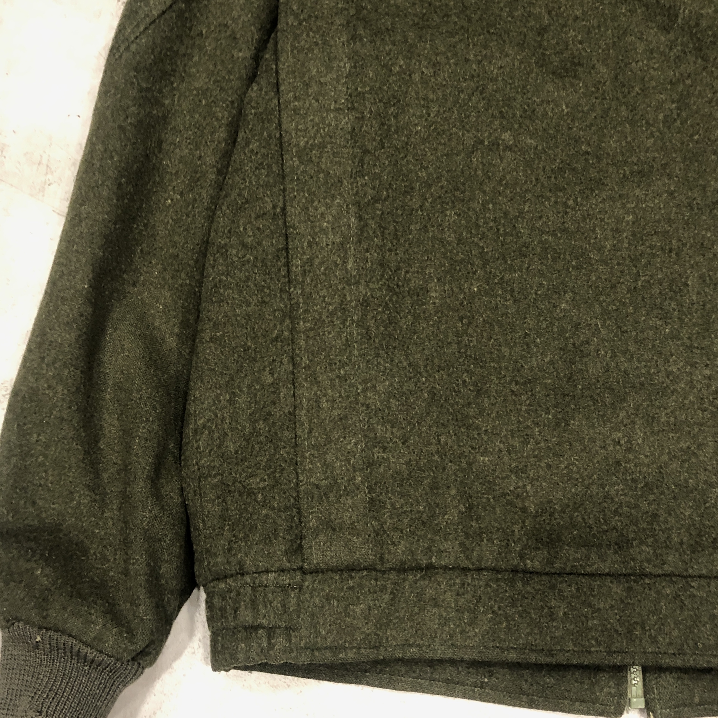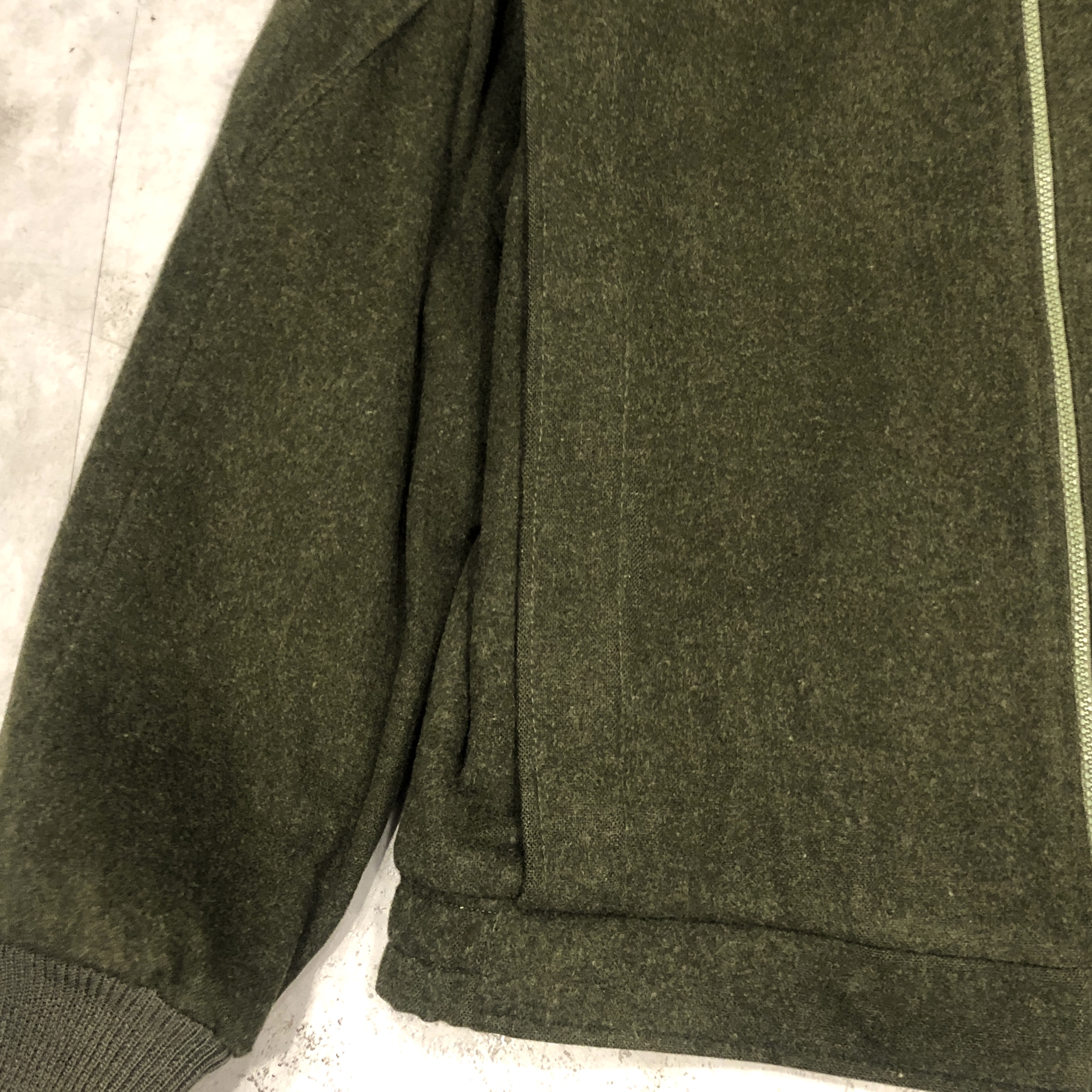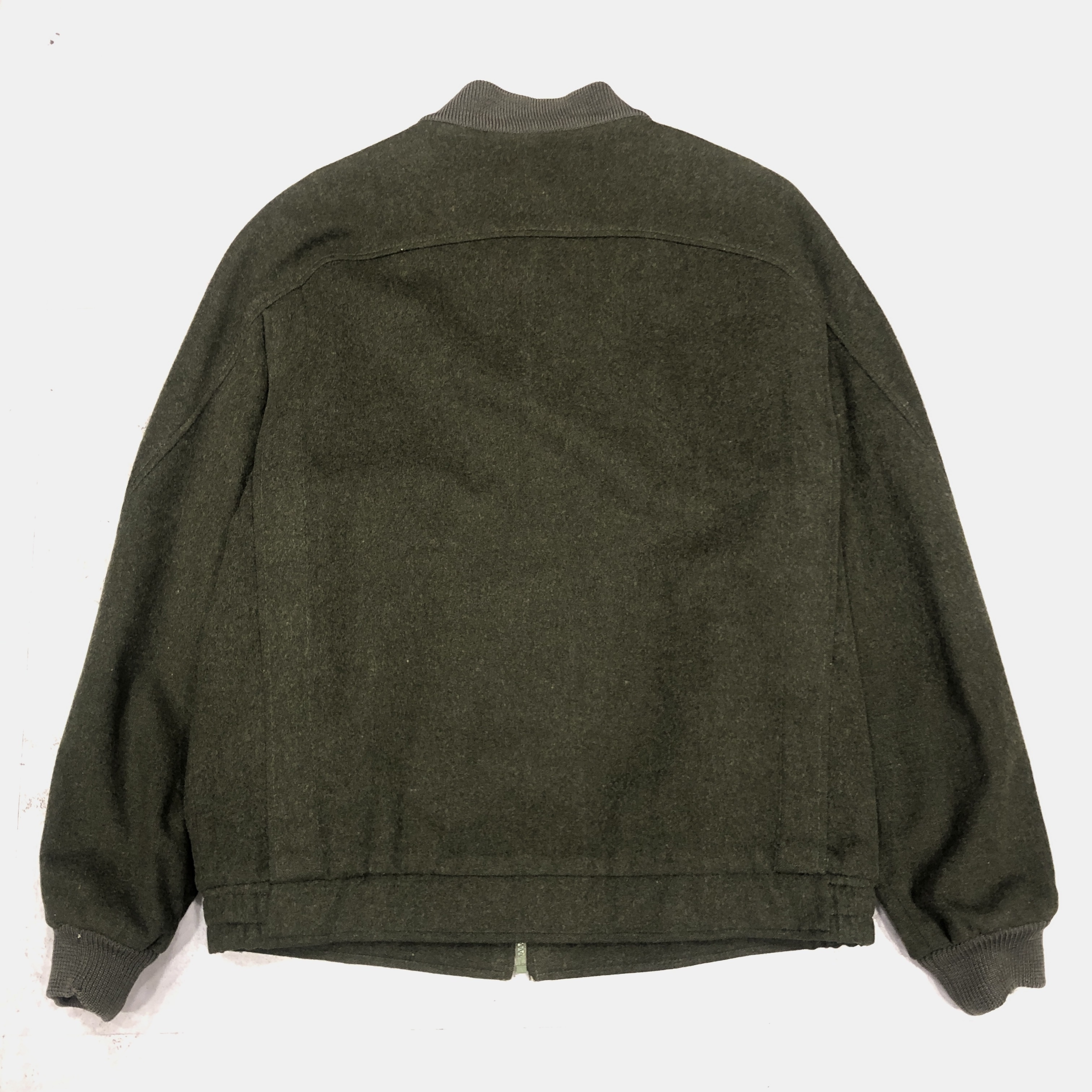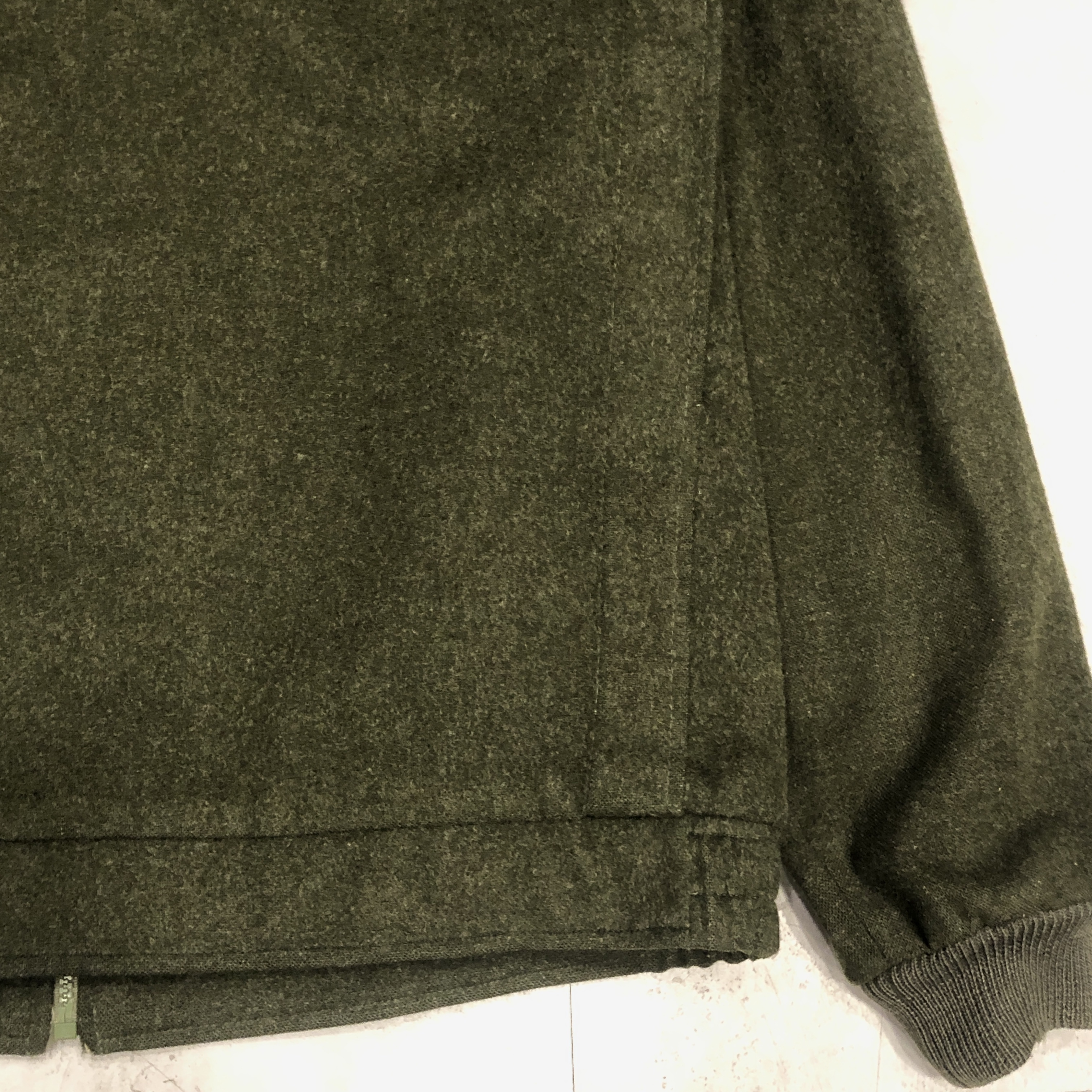 〈Burberrys〉が手掛けた、ローデンクロス素材のジップブルゾン。深いフォレストグリーンのウール地は、しっとりとした光沢と滑らかな起毛感を備え、一般的なメルトンとは一線を画す上質な風合いです。