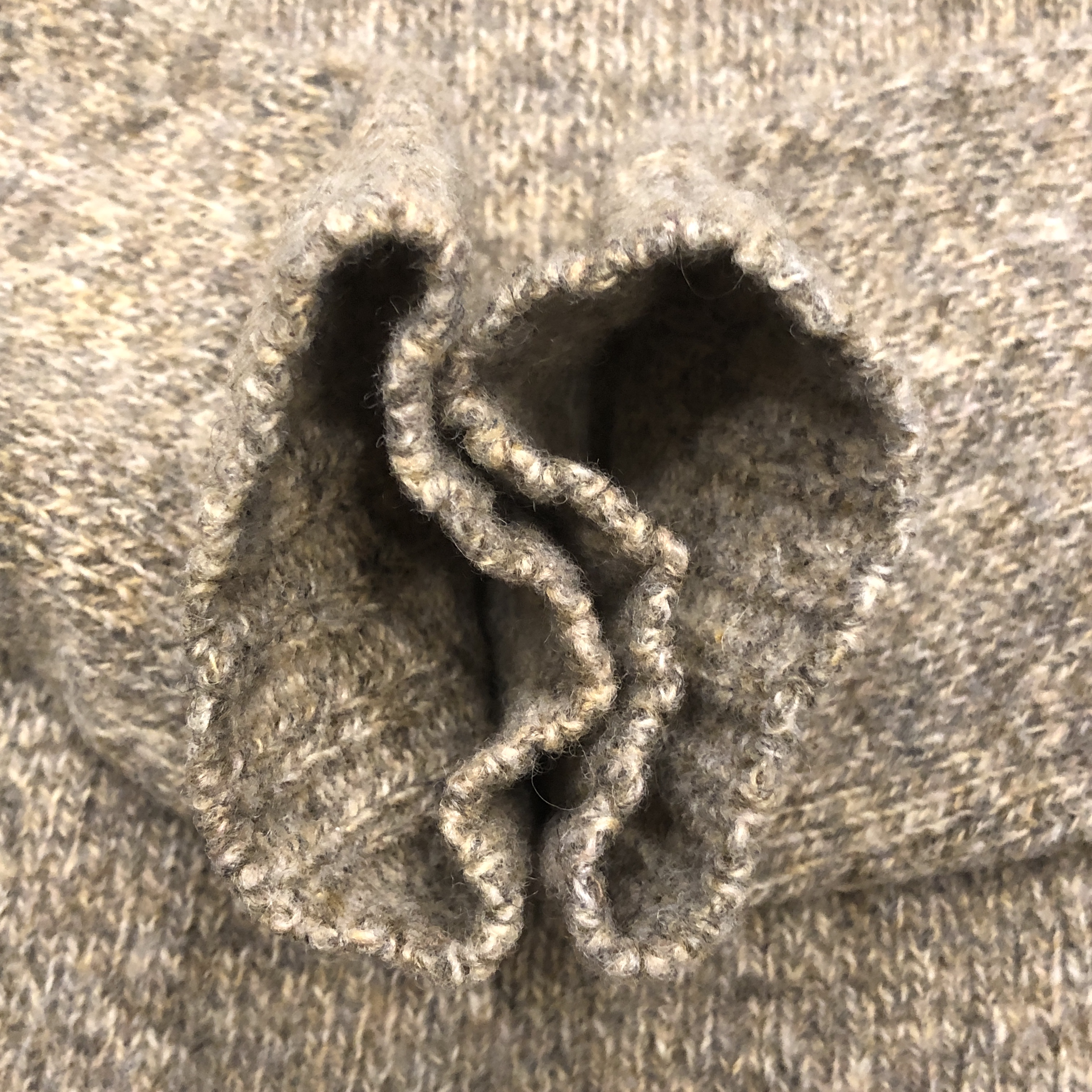 スコットランドの職人によってハンドフレームで丁寧に編み上げられた純毛ニット。