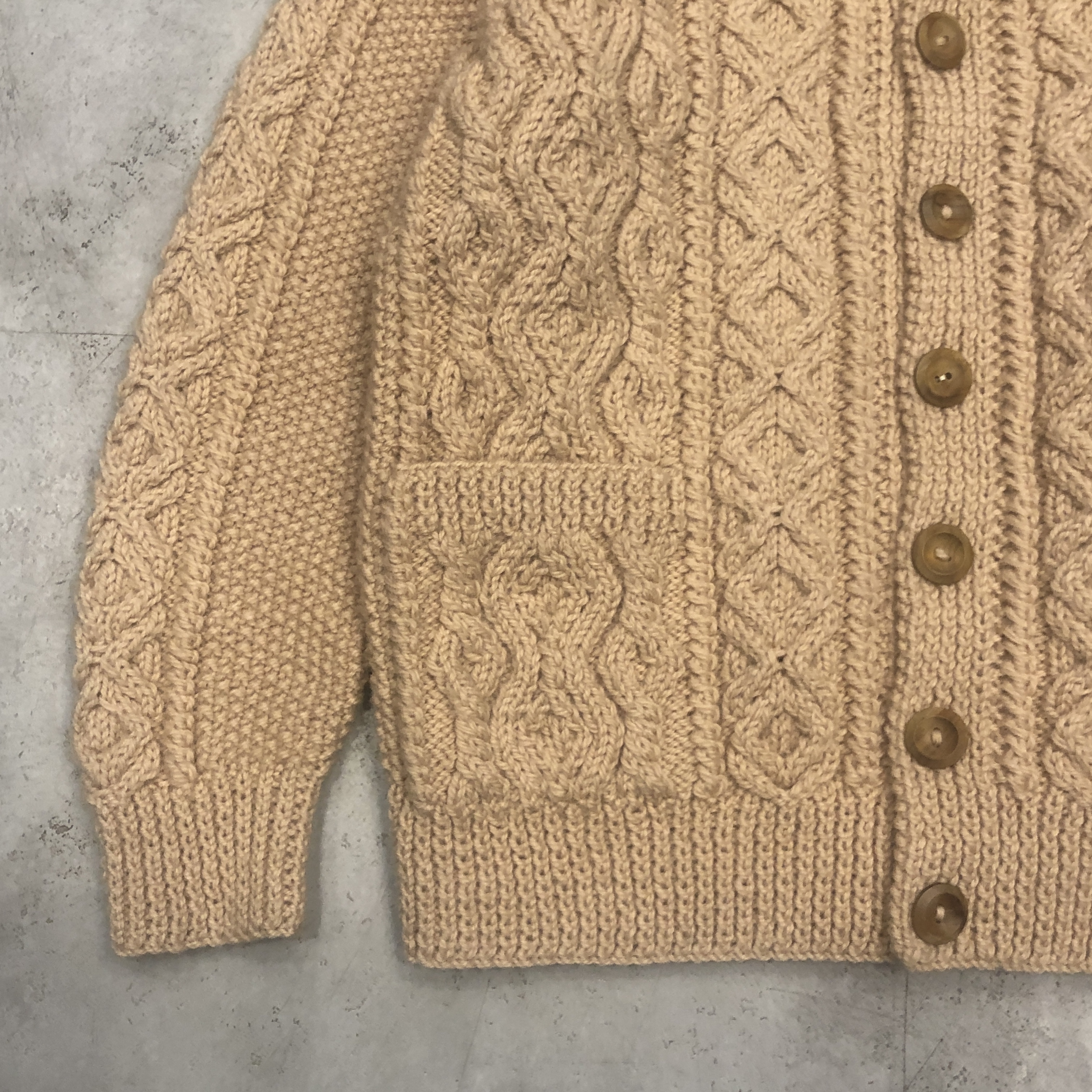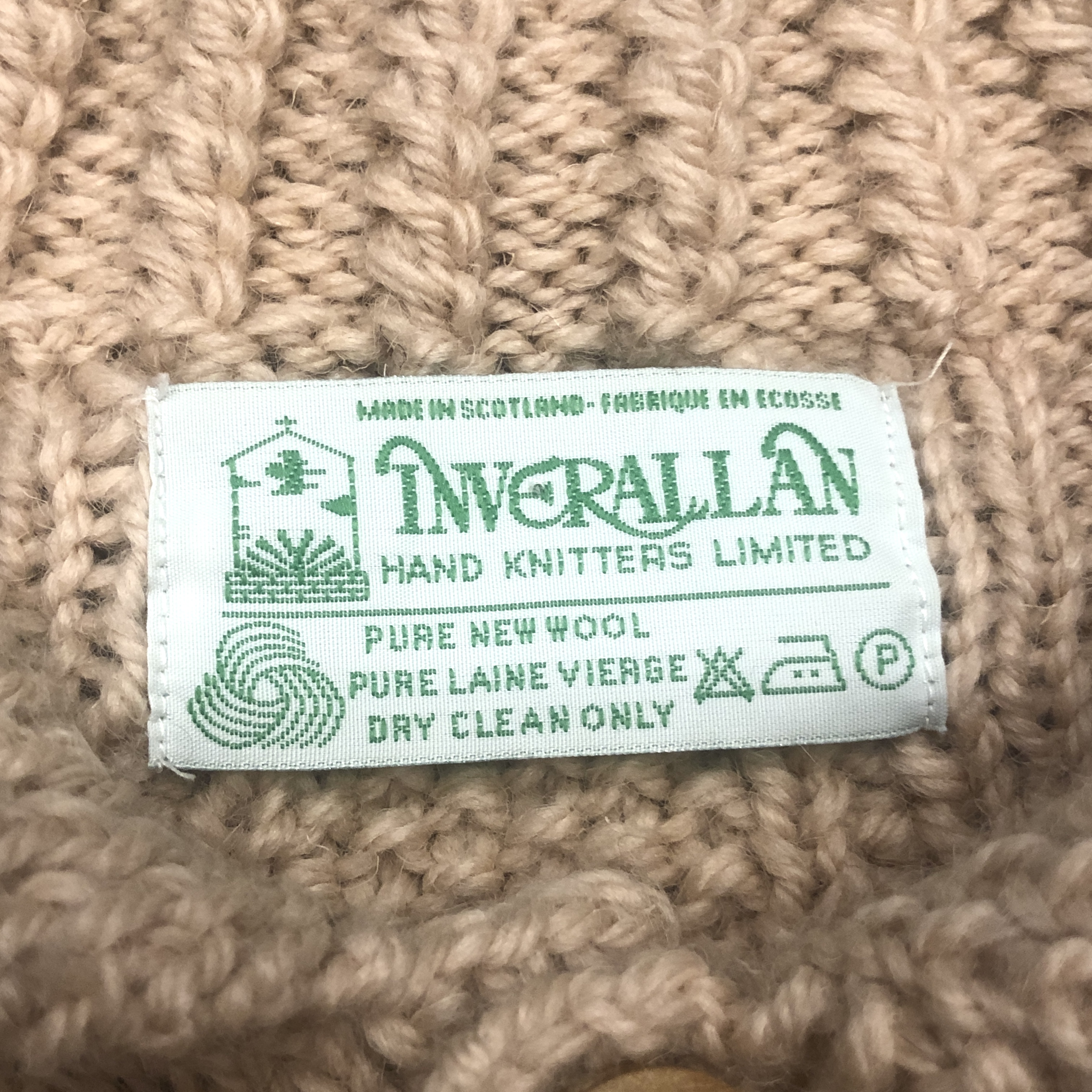 - 1970年代より続くスコットランド発の名門〈INVERALLAN〉による、名作「3A」ハンドニットカーディガンのご紹介です。熟練した職人の手仕事により、1着編み上げるのに60時間以上を要するとも言われる名品。クラシックなアラン編みの模様と、存在感のあるウッドボタン、ざっくりとしたピュアニューウールの肉厚な風合いが相まって、まさに“一生モノ”と呼ぶにふさわしい佇まいです。