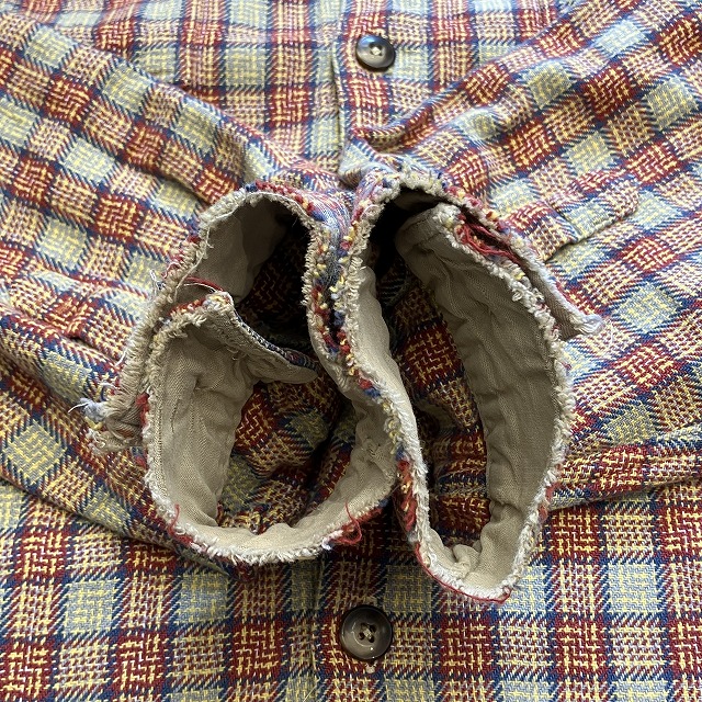 - 所々に薄汚れやシミ汚れ、袖先のダメージがみられます。