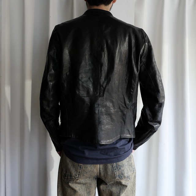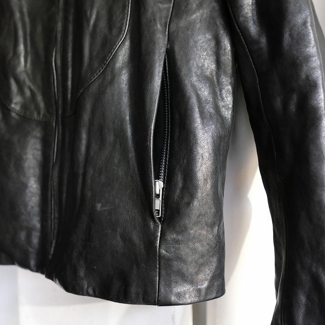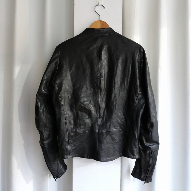 八の字ライダースほどのアイコニックなアイテム程に主張をしたくない方や初めてのマルジェラのレザージャケットをお考えの方にも手に取りやすいグッドプライスでご用意できましたので是非。