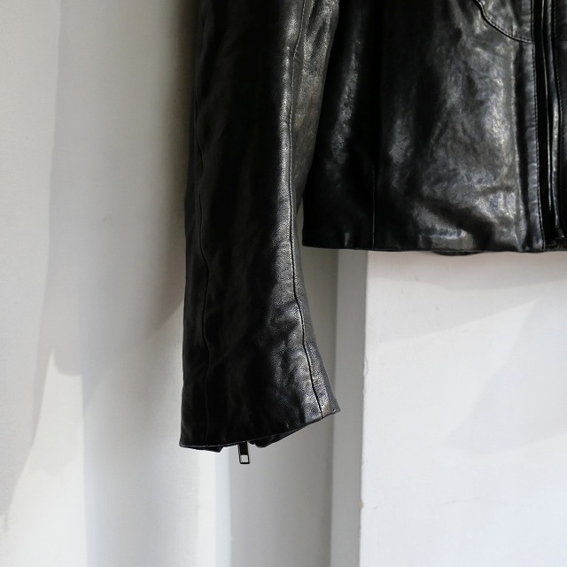 通称"八の字ライダース"と呼ばれる5zipライダースが有名ではございますが、当個体はフロントのディテールなどお洒落なデザインでカラーもブラックと使い勝手が良く個人的にもオススメの一着。