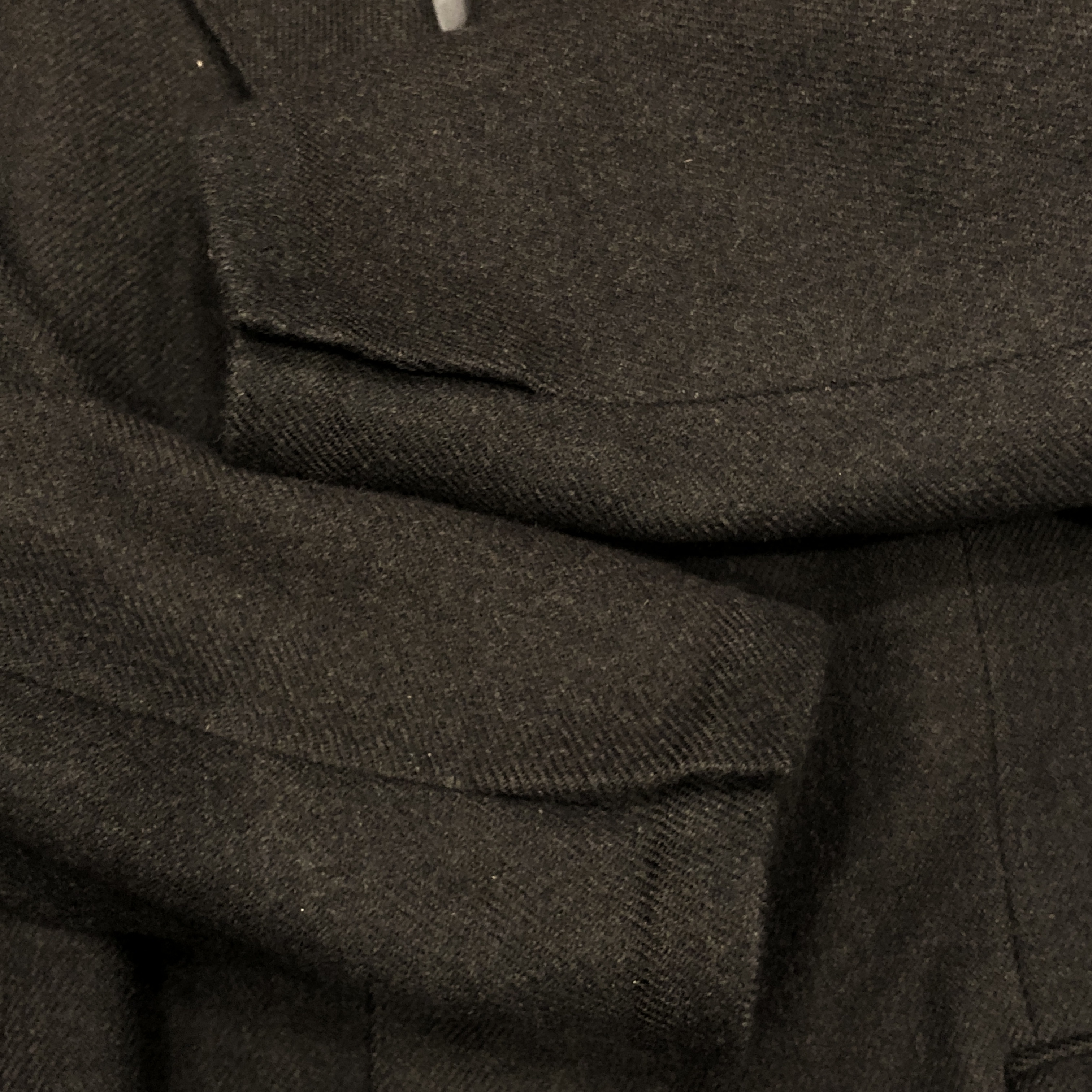 - 年代相応の着用感はなく、内側左裾に画像の様なホツレはございますが、その他着用に支障をきたすダメージ等は見受けられません。古着慣れされている方でしたら問題なくお使いいただける範囲です。