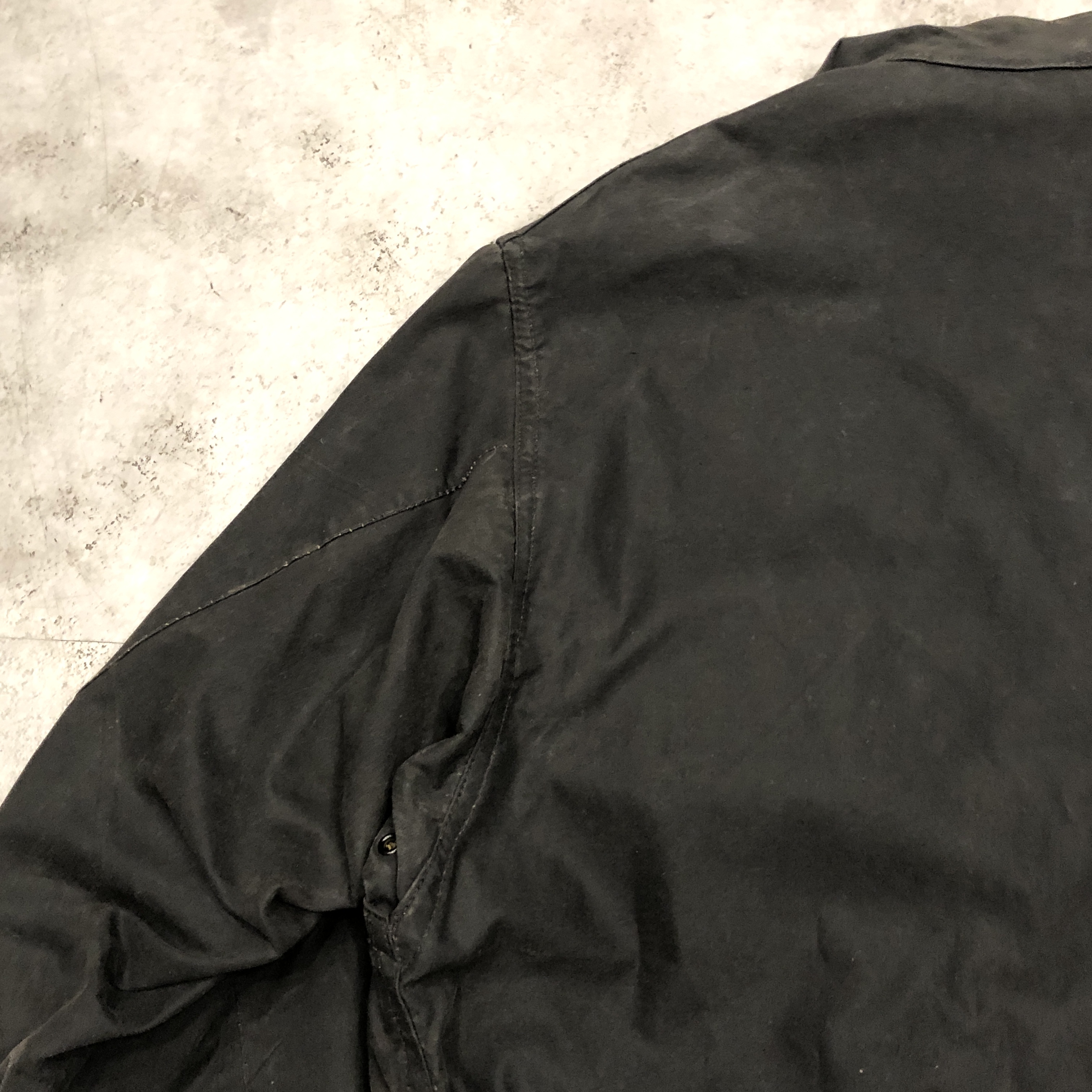 - 年代相応の着用感、オイルドコットン特有のスレ、アタリ、内側ポケット部分の破れ等が画像の様にございますが、古着慣れされている方でしたら問題なくお使いいただけます。