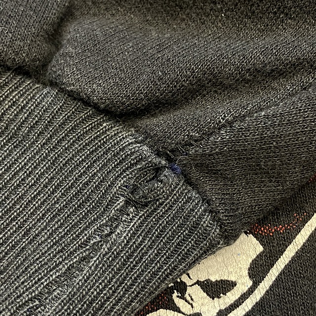 - 正面プリント部分に小穴がみられます。また、裾リブ付近に小さな汚れがみられます。その他、スレ、アタリ、毛玉等の年代相応の着用感ございますが、ユーズド慣れされた方でしたら問題なく着用していただけます。