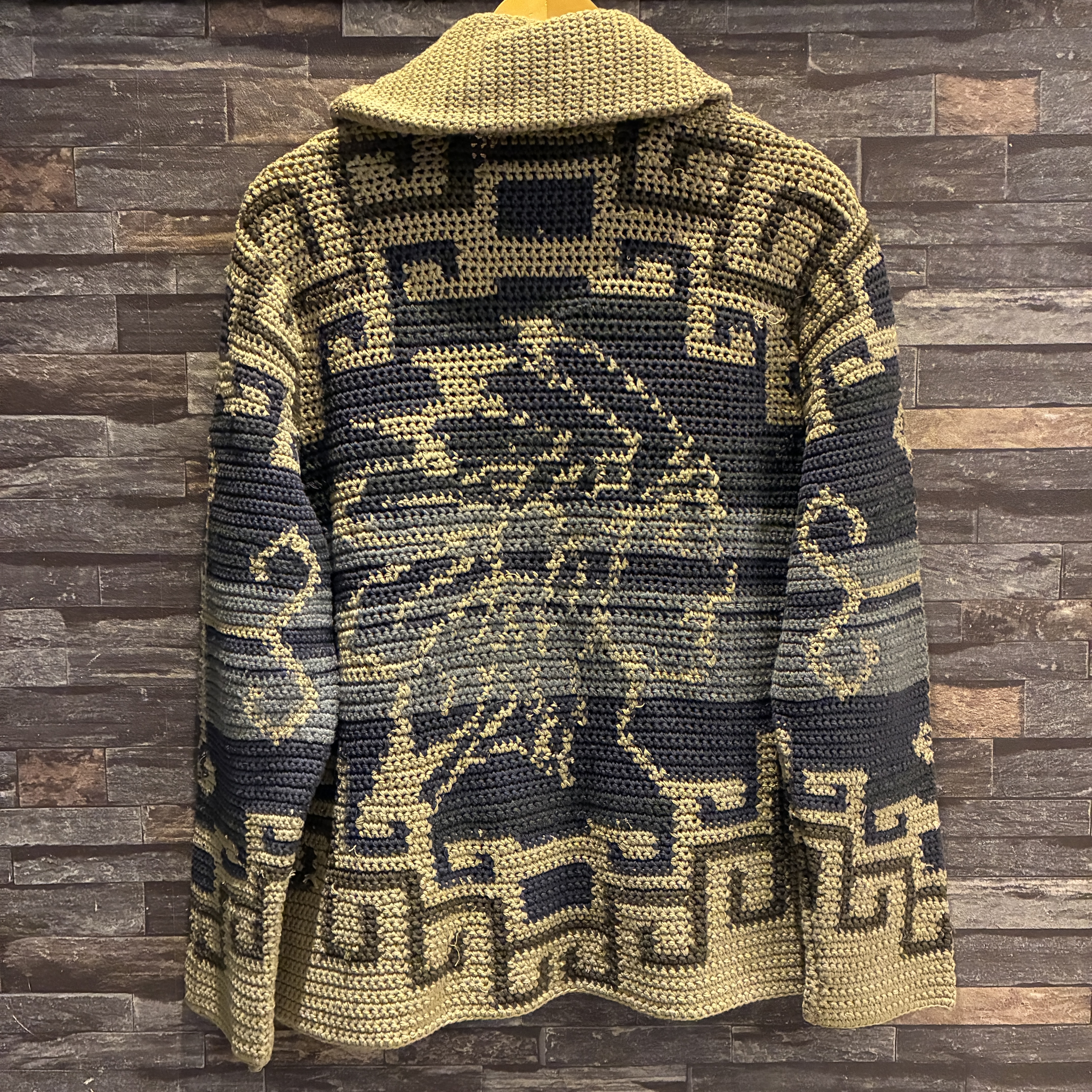 - ハンドニット製品特有の糸の飛び出しや多少の着用感が見られますが、目立つダメージ等は無くまだまだ問題無く着用していただける状態です。