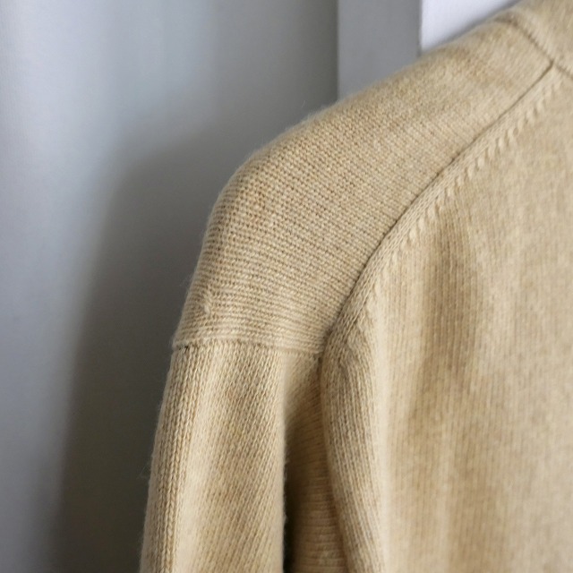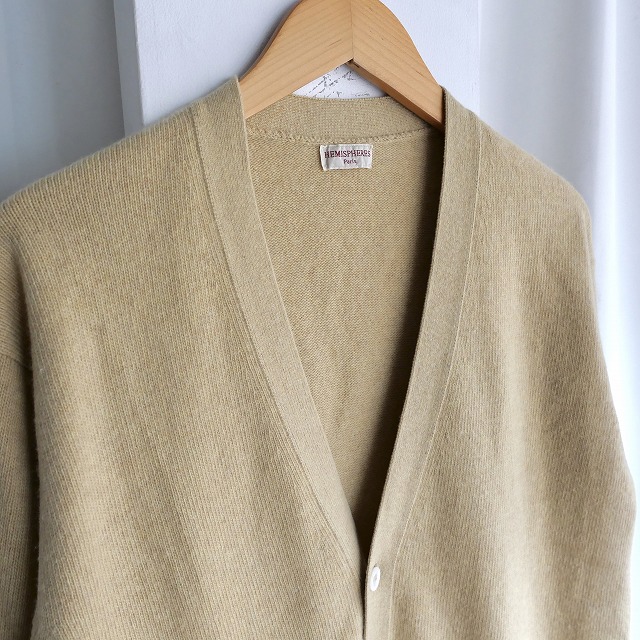 エミスフェールは自国のフランスは勿論、日本でも人気に火がつき、株式会社カネマンが店舗を構え、輸入とライセンス生産を始めますが、当個体は輸入された本国オリジナルアイテムの滑らかでソフトな肌触りのジーロンラムズウールを使用したカーディガンです。