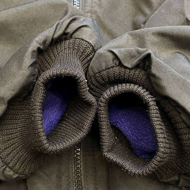 - 袖に汚れがみられます。また、ファスナーの引き手に変形がみられます。その他、スレ、アタリ等の年代相応の着用感ございますが、まだまだ問題なく着用していただけます。