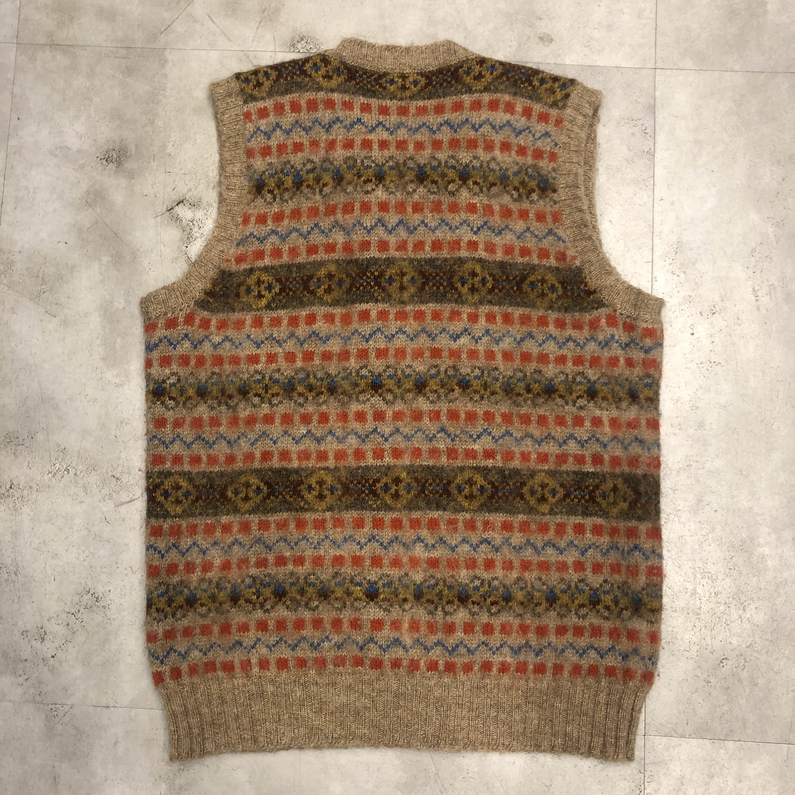 スコットランド製というだけでニットとしての価値は申し分なく、それでいて “可愛くなりすぎない” 絶妙な色柄。男女問わず使える万能ベストです。