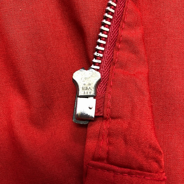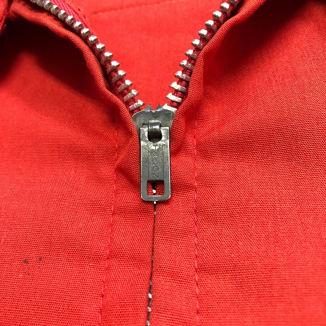 カラーはレッド、TALONジッパー、素材はコットンです。