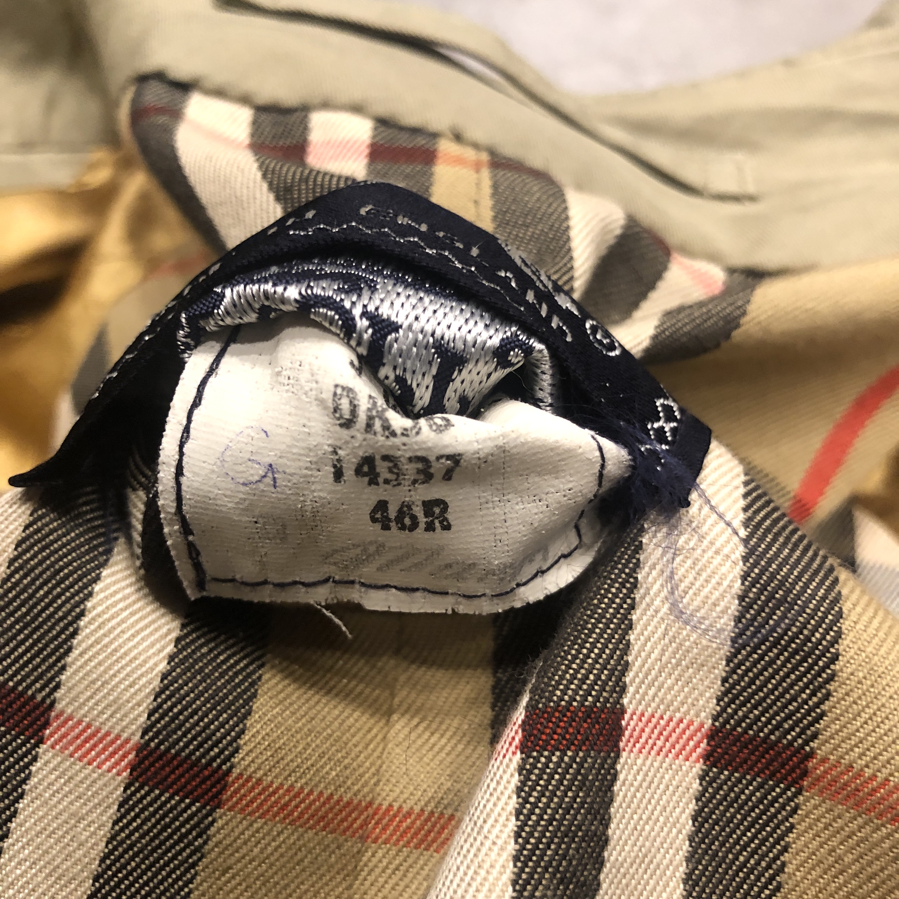 この時代*“Burberrys”ネーム、騎士ロゴ(Prorsum)タグ、そしてMade in England表記。どれを取っても本家ロンドンメイドのオーセンティックなディテールです。