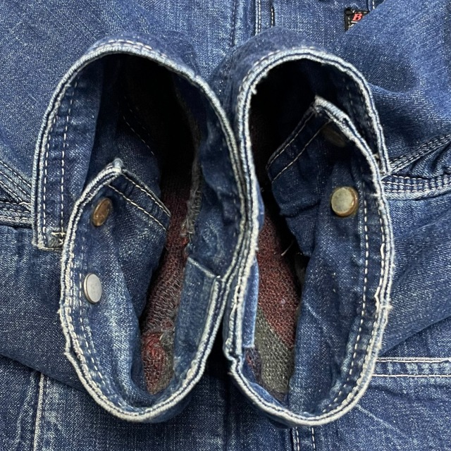 第4ボタン付け根の生地や右袖口のライナーにダメージがございます。