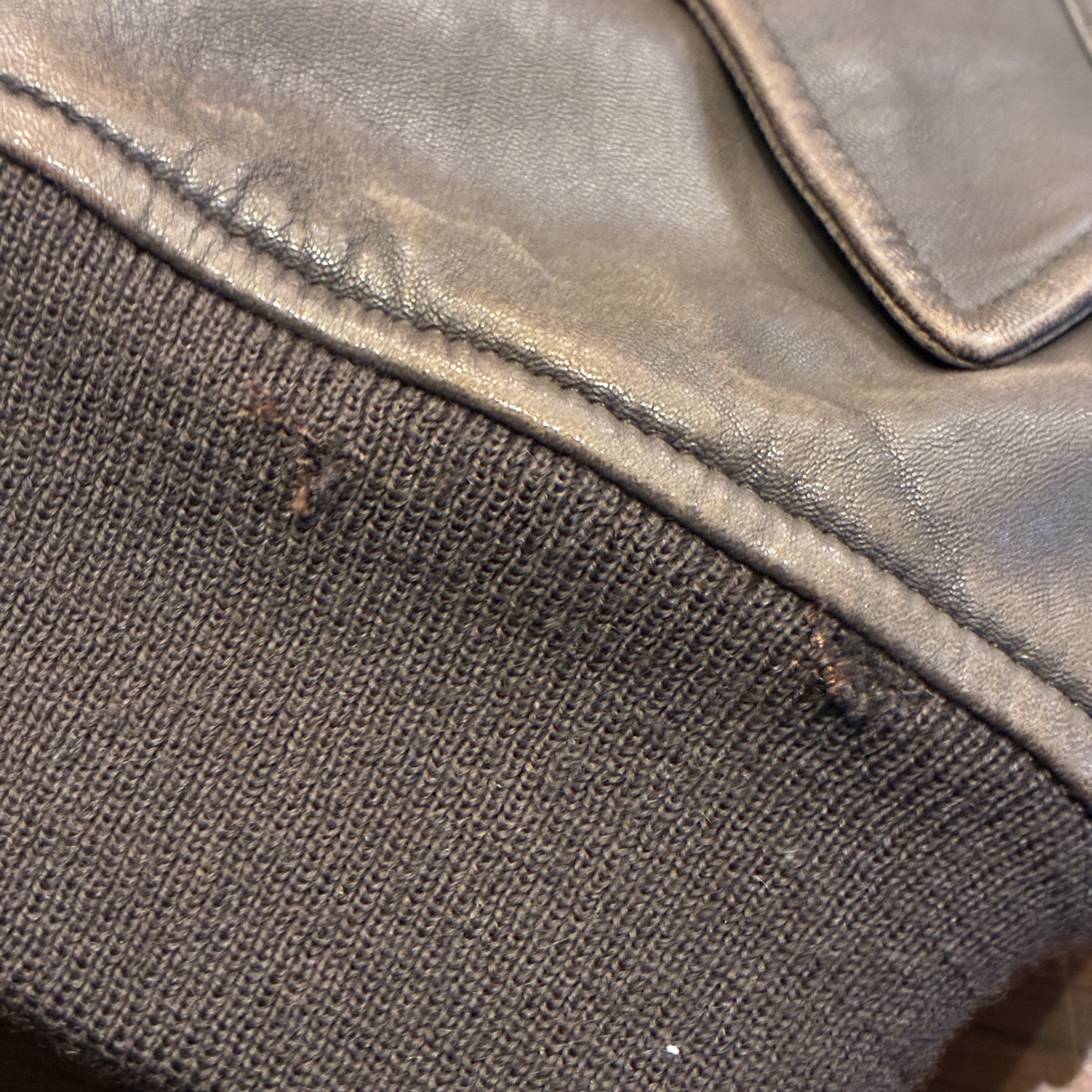 - 肩部分に焼けや各所にアタリ、リブ部分に毛羽立ちや画像の様なダメージ等が見られます。