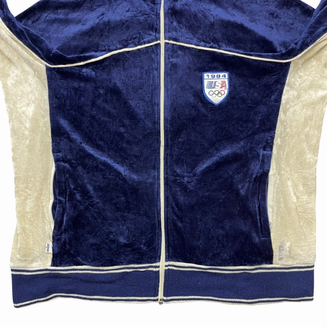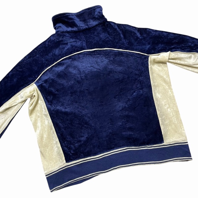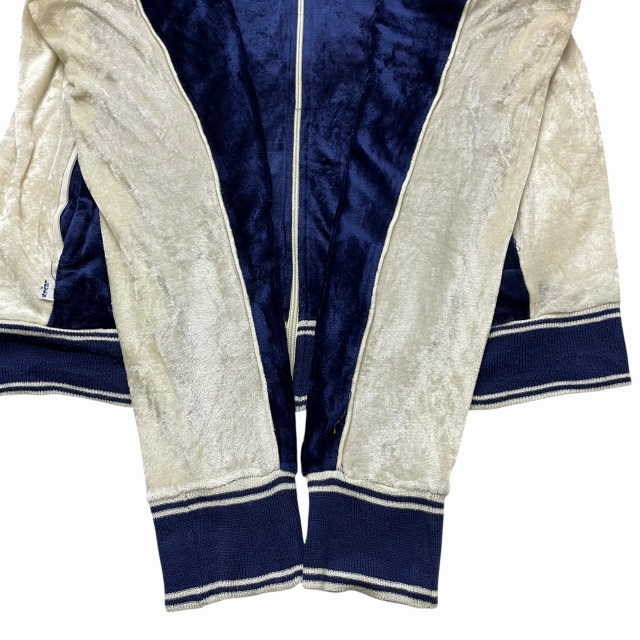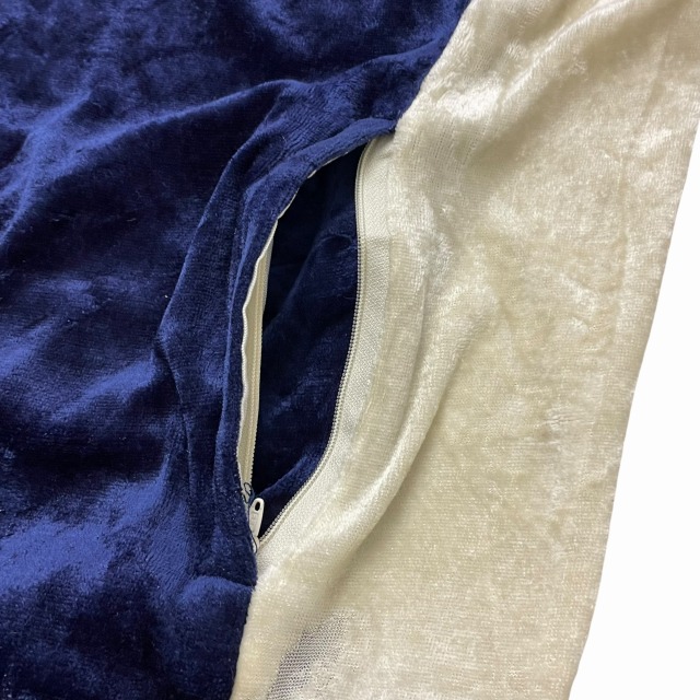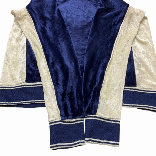 「ネイビー×オフホワイト、ベロア、サイズL」