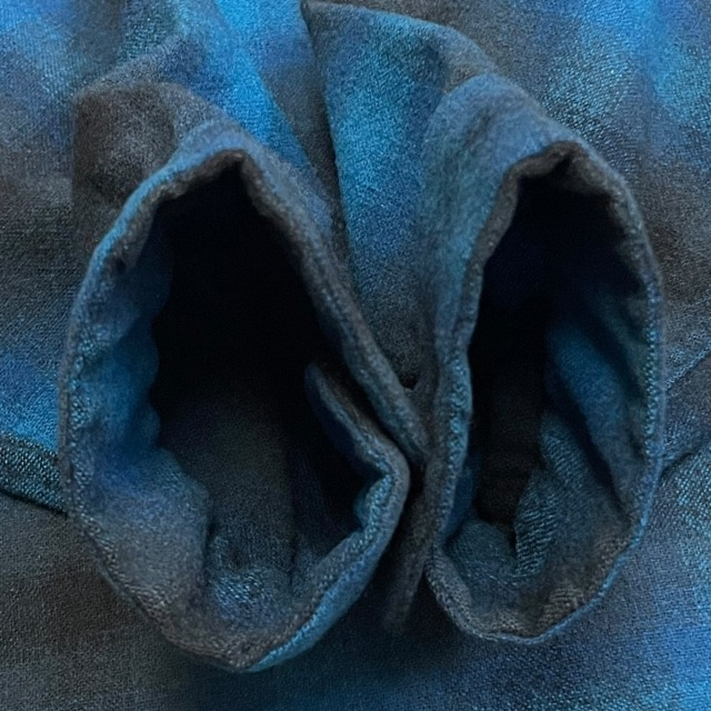 「ブルー×ブラック、オンブレチェック、サイズM」