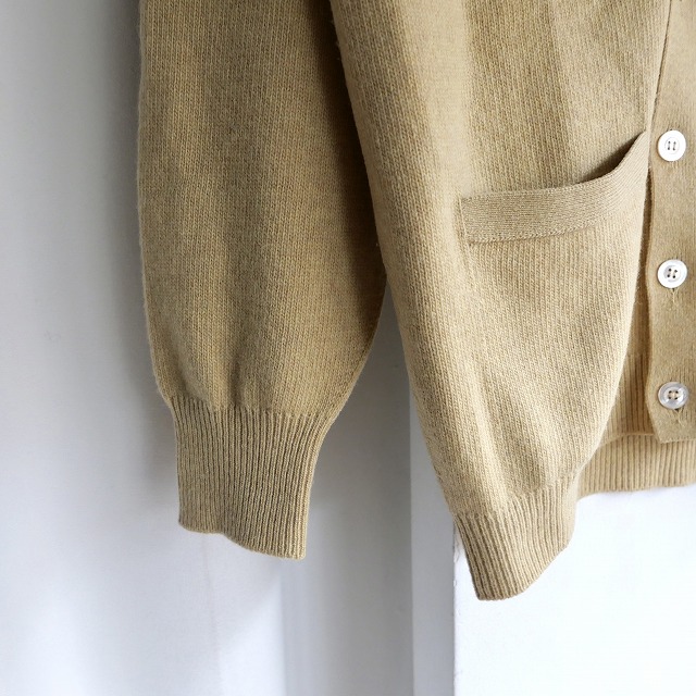 エミスフェールは自国のフランスは勿論、日本でも人気に火がつき、株式会社カネマンが店舗を構え、輸入とライセンス生産を始めますが、当個体は輸入された本国オリジナルアイテムの滑らかでソフトな肌触りのジーロンラムズウールを使用したカーディガンです。