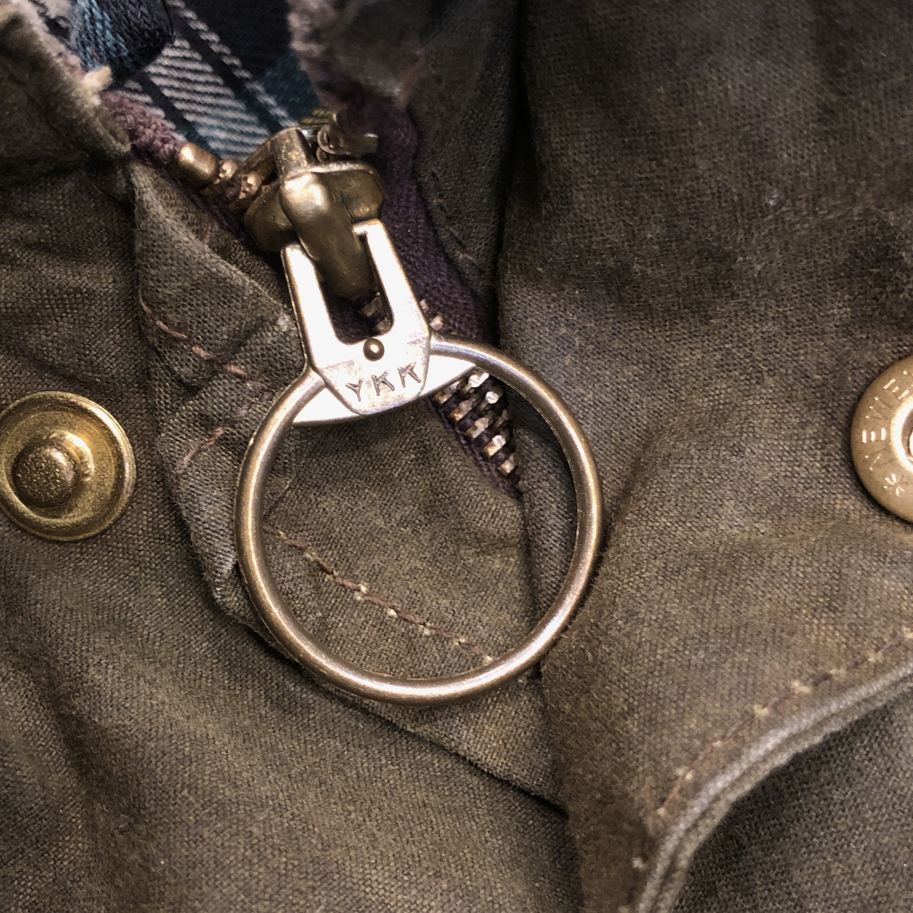 ソルウェイジッパーは1960年代から80年代にかけて生産された、Barbour伝説の“ロング丈フィールドコート”。ハンティングやフィッシング、乗馬まで多用途に対応する堅牢なつくり。ワイドなアーム、そして大容量のフラップポケット。YKK製リングジップも当時物の証です。なかでも1ワラント期の個体は今や英国本国でも希少。コレクター垂涎のディテールが随所に残っています。
