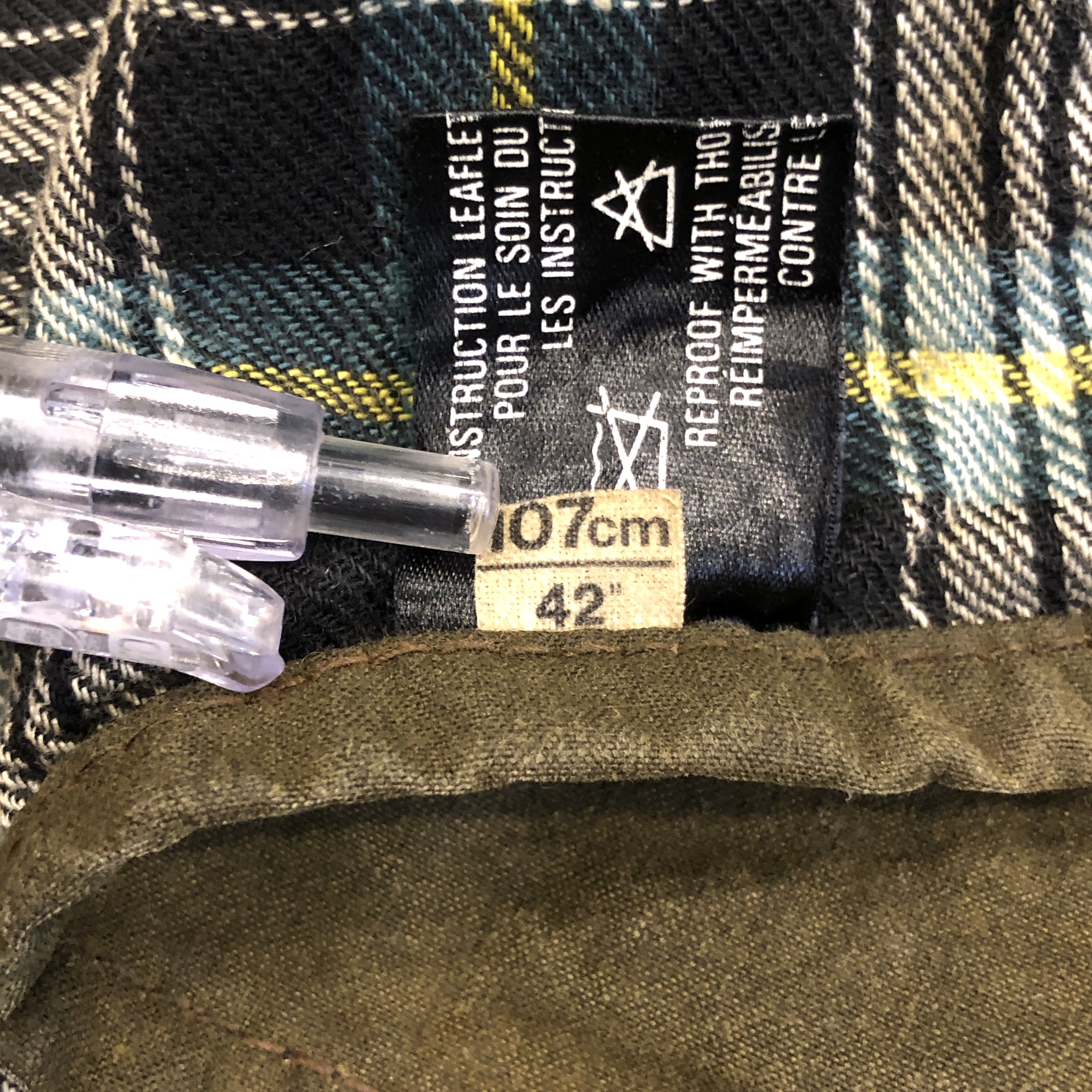 - 英国アウトドアウェアの象徴、Barbourの名作「Solway Zipper」。本品は王室御用達(1ワラント)時代の、ヴィンテージ市場でも高く評価される希少な個体です。伝統のワックスドコットンは深みあるオリーブカラーを湛え、まるで時の流れを封じ込めたかのよう。襟元の太畝コーデュロイも柔らかく、裏地のチェックは英国らしい品格を感じさせます。