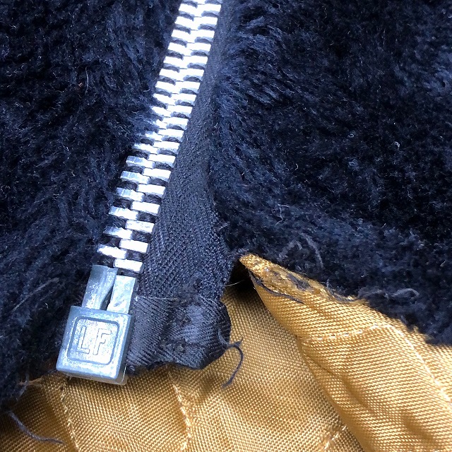 ファスナー下部の縫製部分にホツレや手縫いで簡易的なお直しがございます。