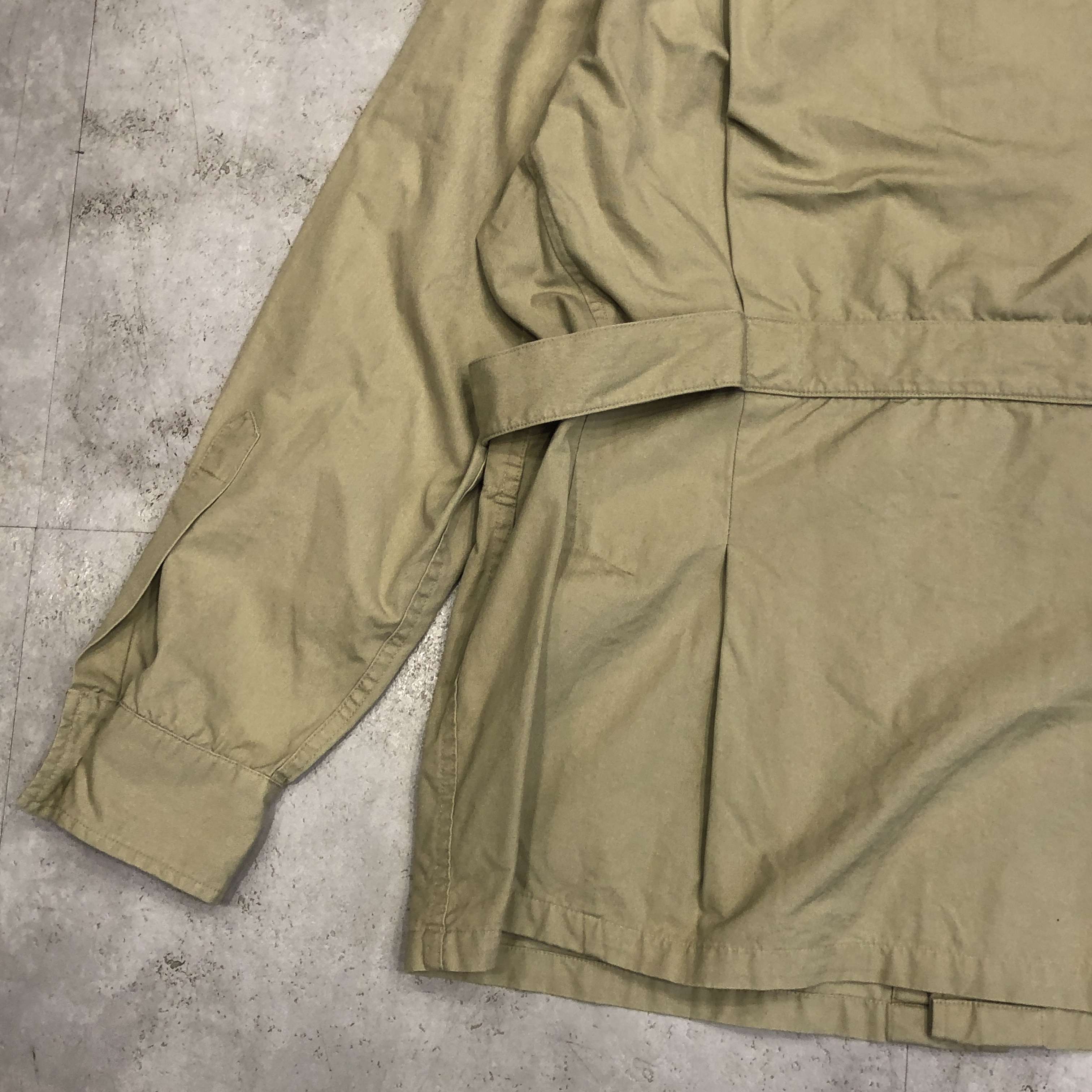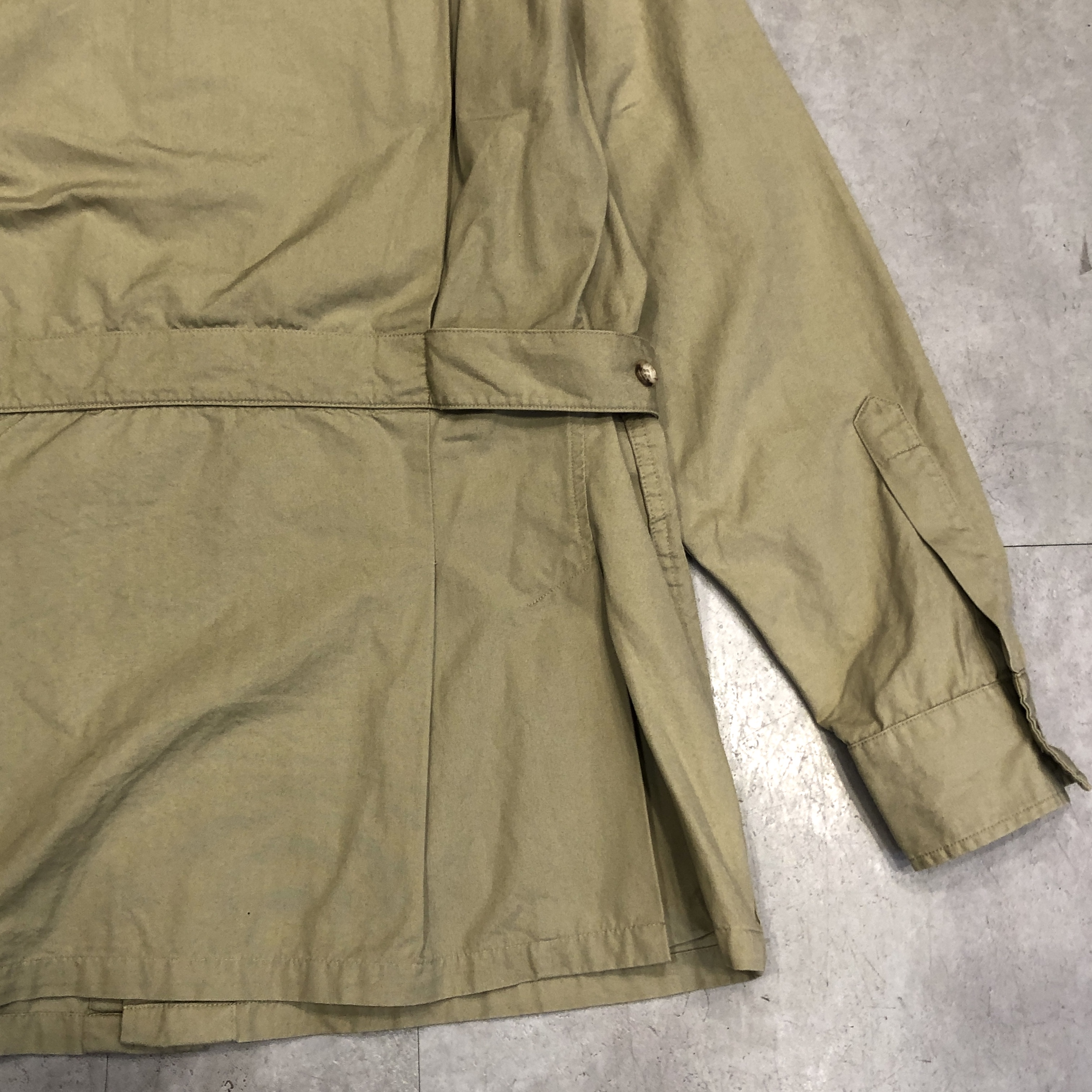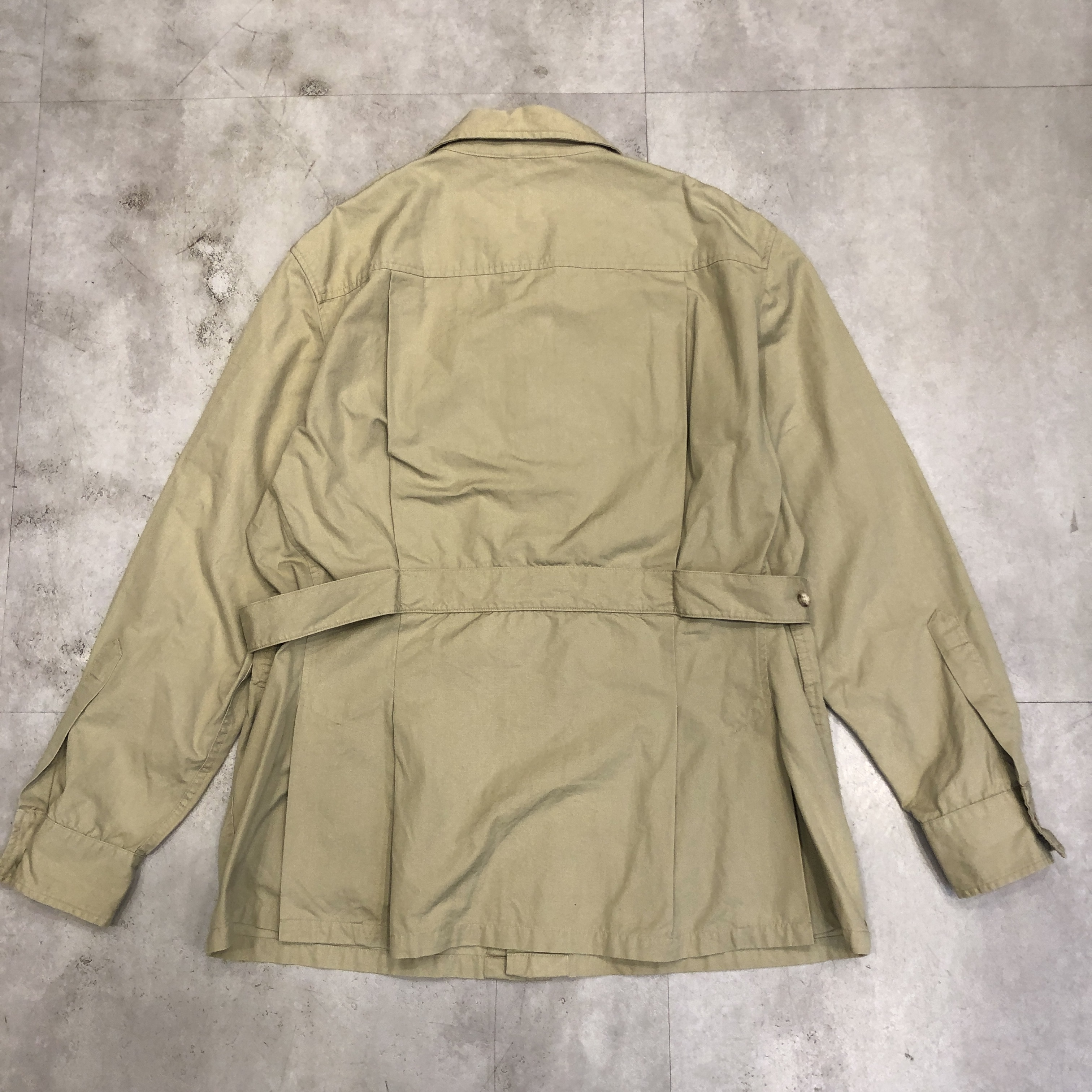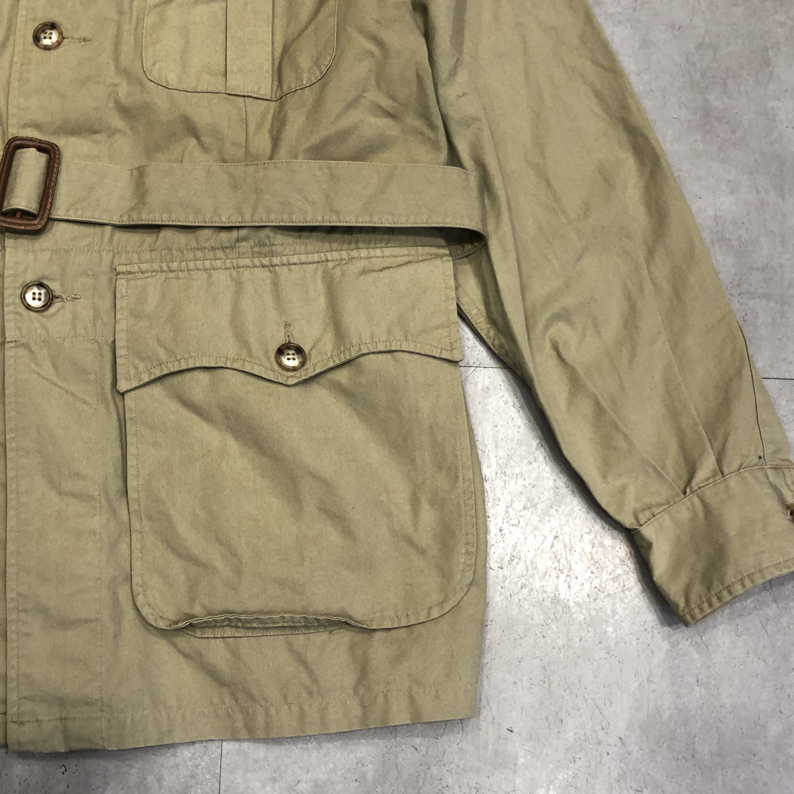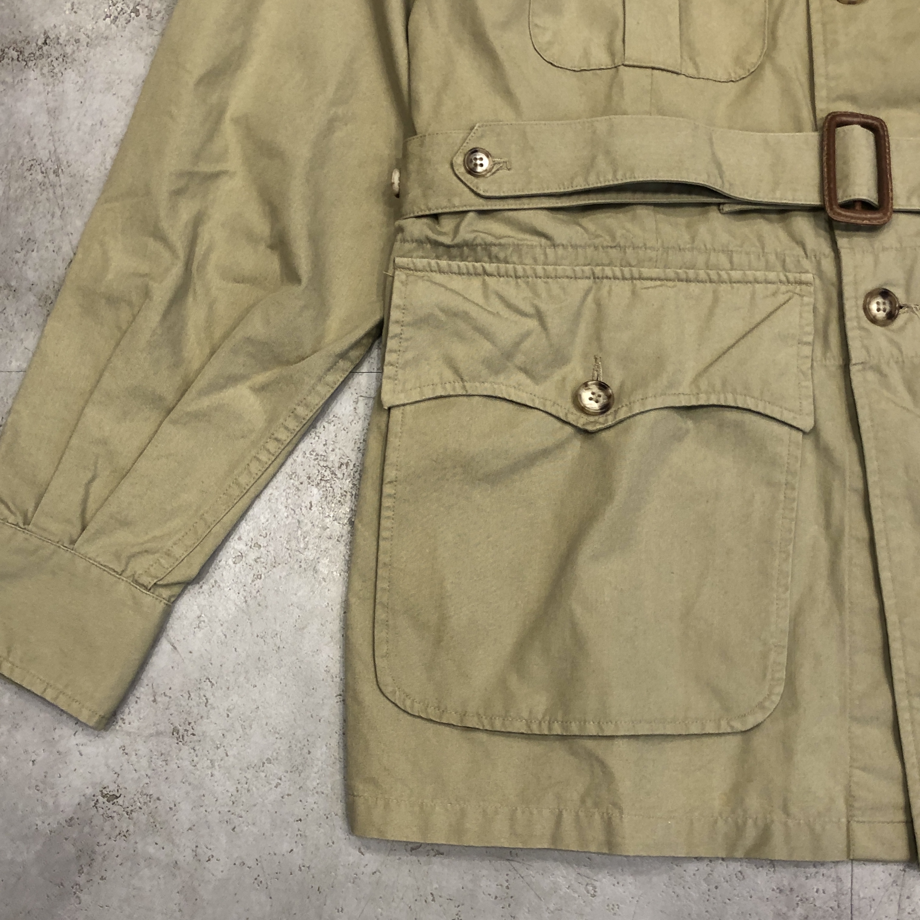 フロントと腰ポケットにはフラップ付きの大型ポケットを備え、ベルト仕様やエポレット、しっかりとしたカフスディテールなど、冒険服としての機能美が光ります。特にこの“Gable”モデルは、伝説の俳優クラーク・ゲーブルが愛用したとされるサファリジャケットをモチーフにしており、実用とエレガンスが絶妙に同居。現代のタウンユースでも映える洗練されたシルエットと上品なカラーは、アメカジファンはもちろん、アウトドアやトラッドスタイルにも格別の存在感を放ちます。