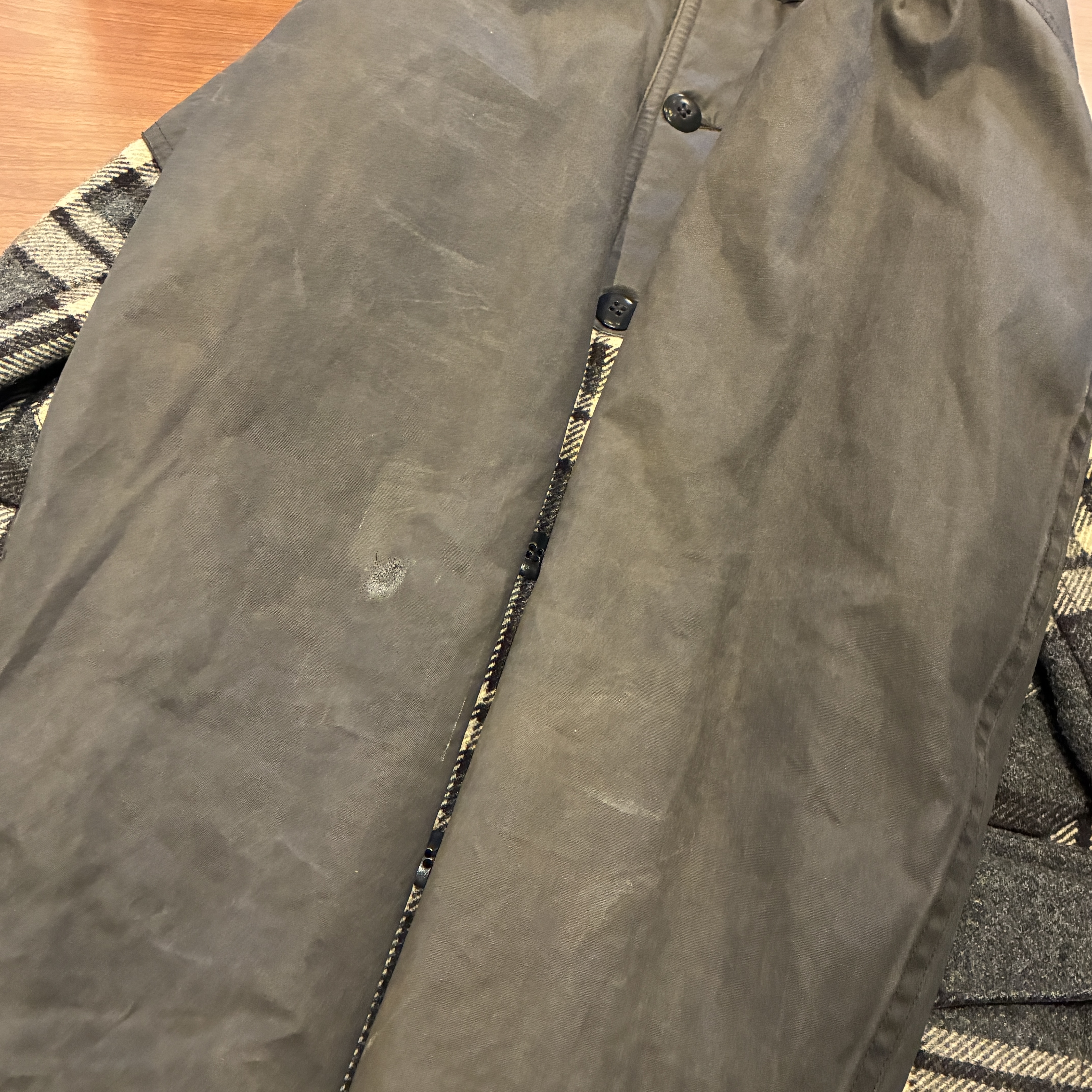 - 素材特有のアタリや袖に一部補修跡がございます。