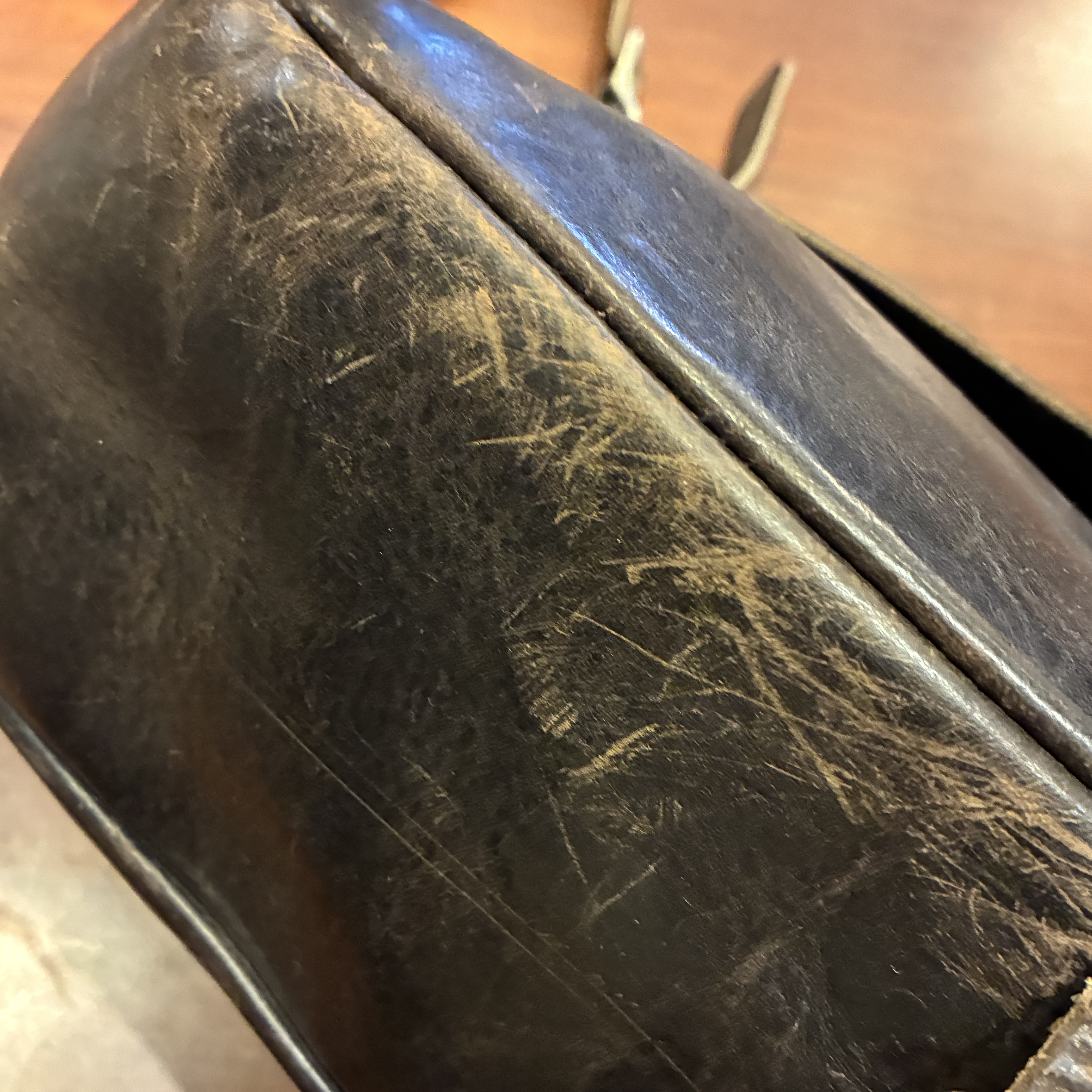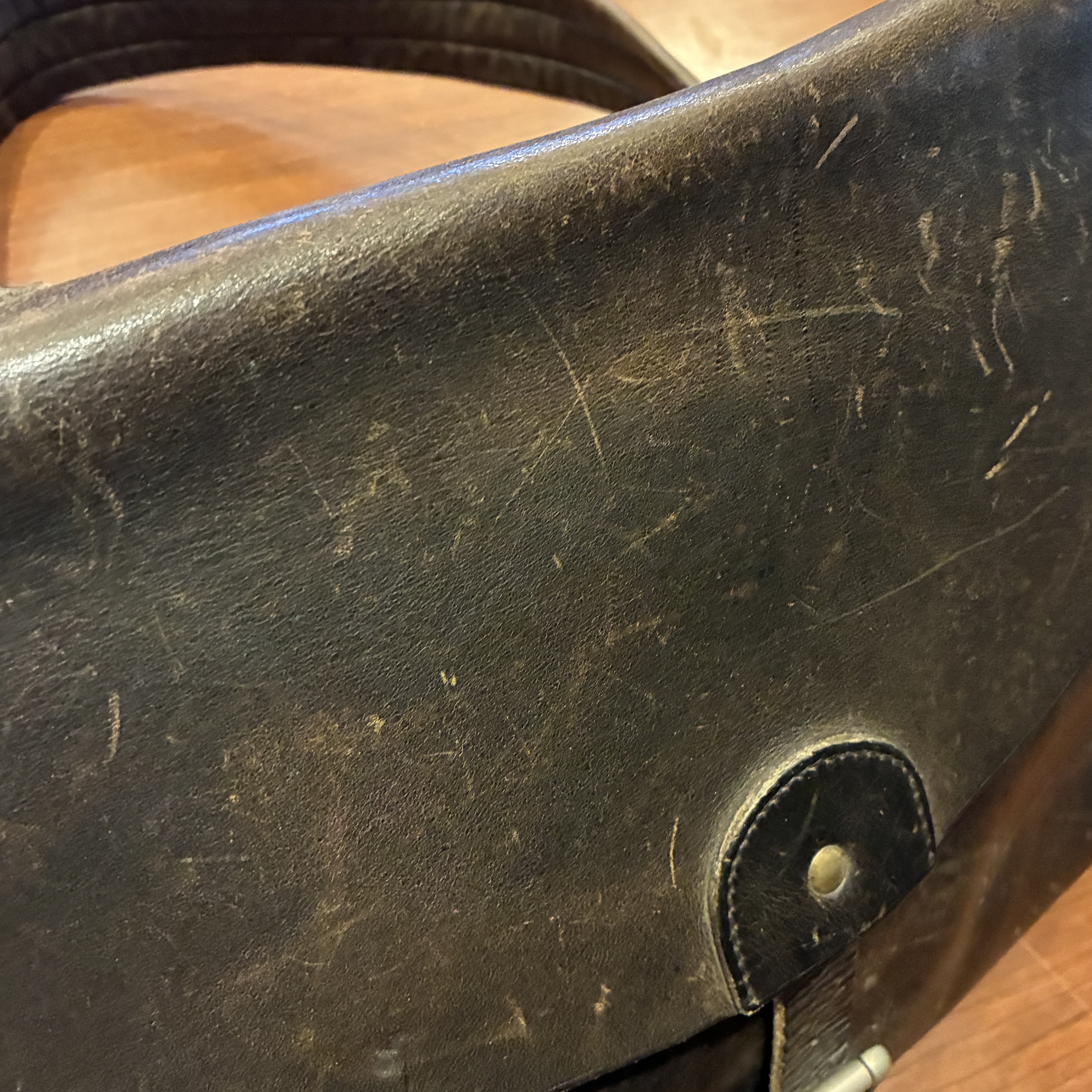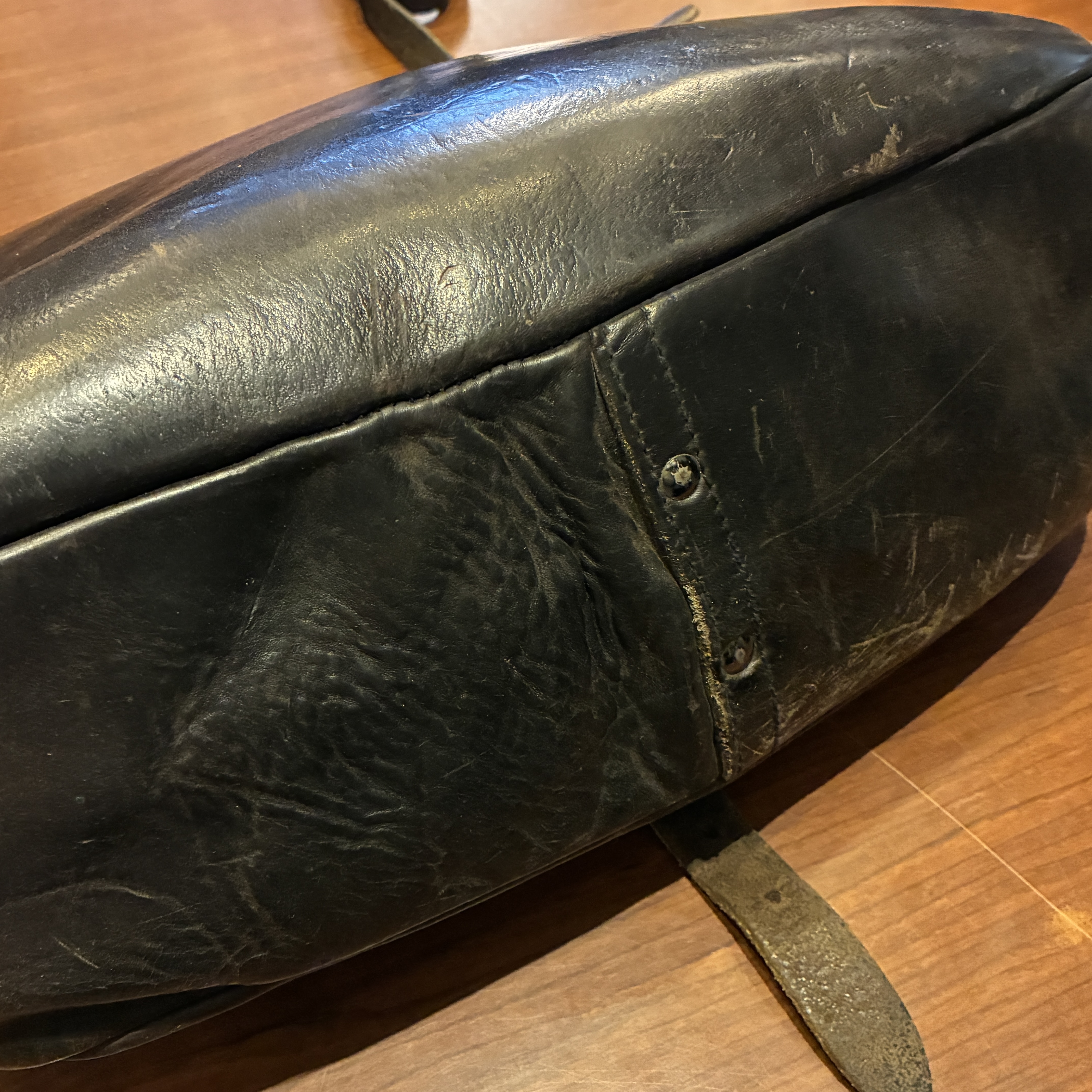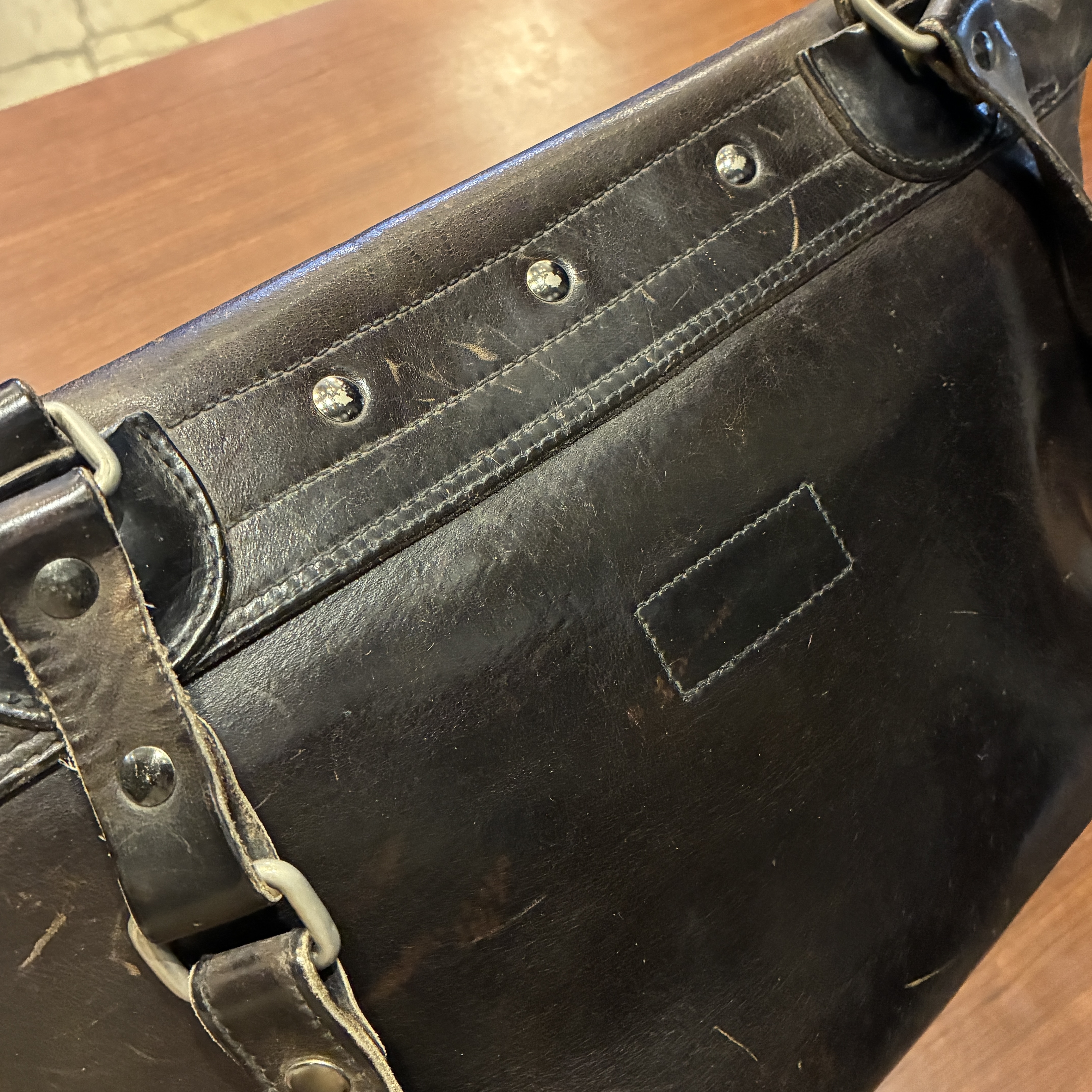 - 金具に緑青(青サビ)やレザーに傷、ベルト部分が柔らかくなっていたり等の使用感がございますが、その他に目立つダメージや欠陥箇所等は無く問題無く使用していただける状態です。