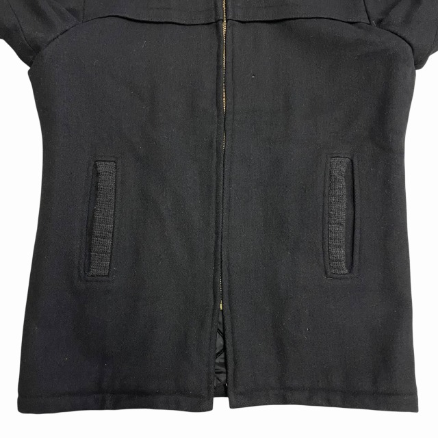 - 画像のように、所々に虫喰い等のダメージがあり、左胸付近や前左裾上等に穴がございます。