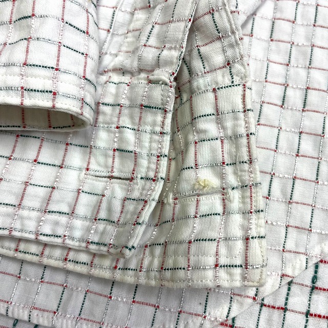 - 画像のように、薄汚れや汚れがあり、左袖口のボタンが欠損しております。