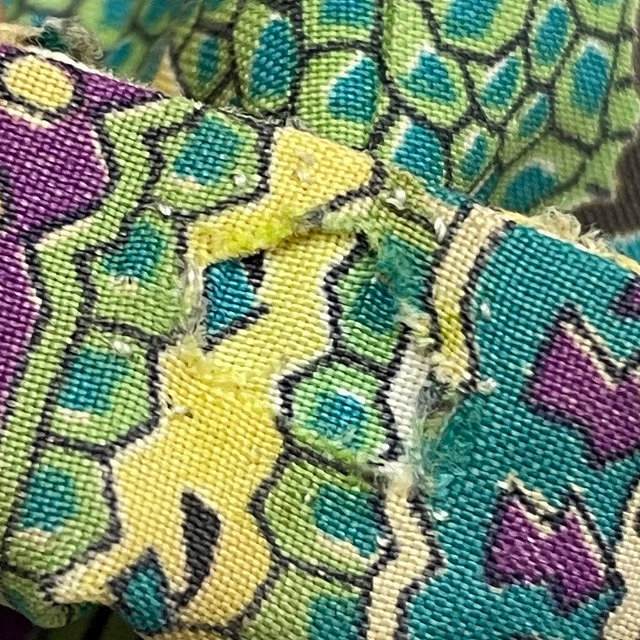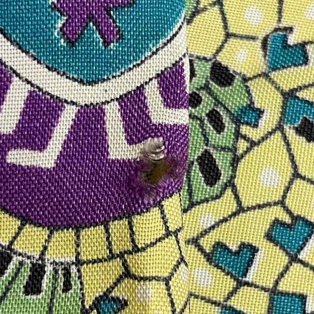 - 画像のように、襟、左肩、袖等に穴等のダメージがあり、袖口にリペアがございます。