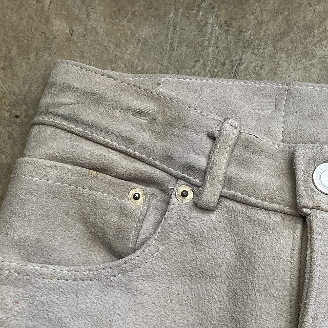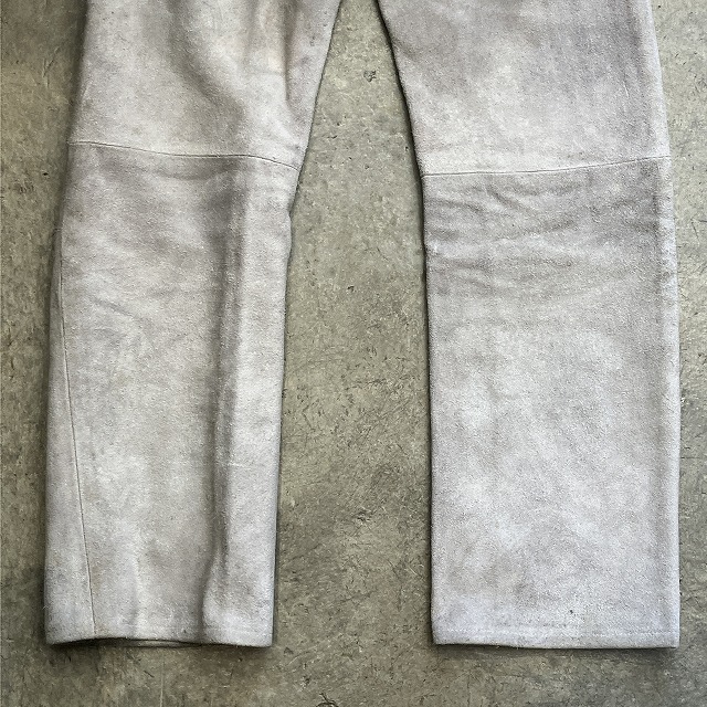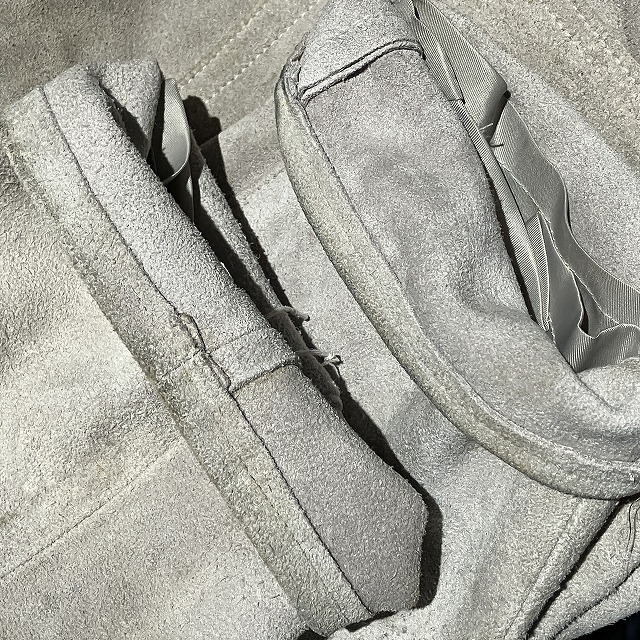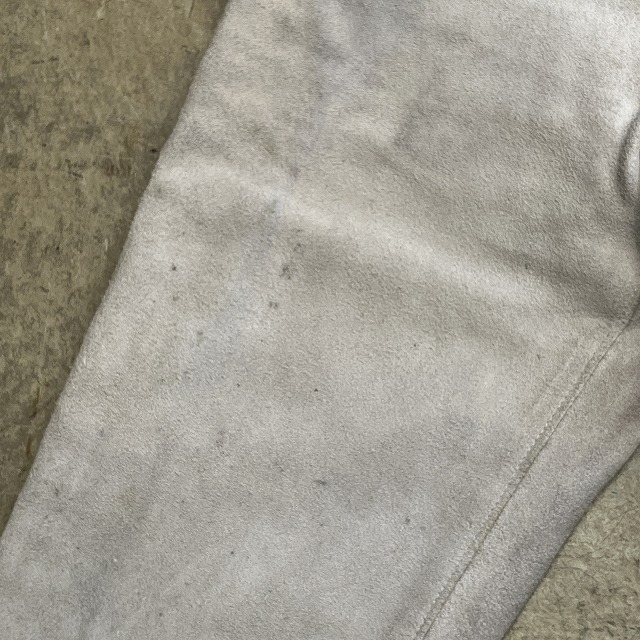 - 画像の様な汚れ、シミが多数見受けられます。その他、レザー生地特有のスレ、毛羽立ち等、年代相応の着用感が見られ、ユーズド慣れされている方にオススメです。
