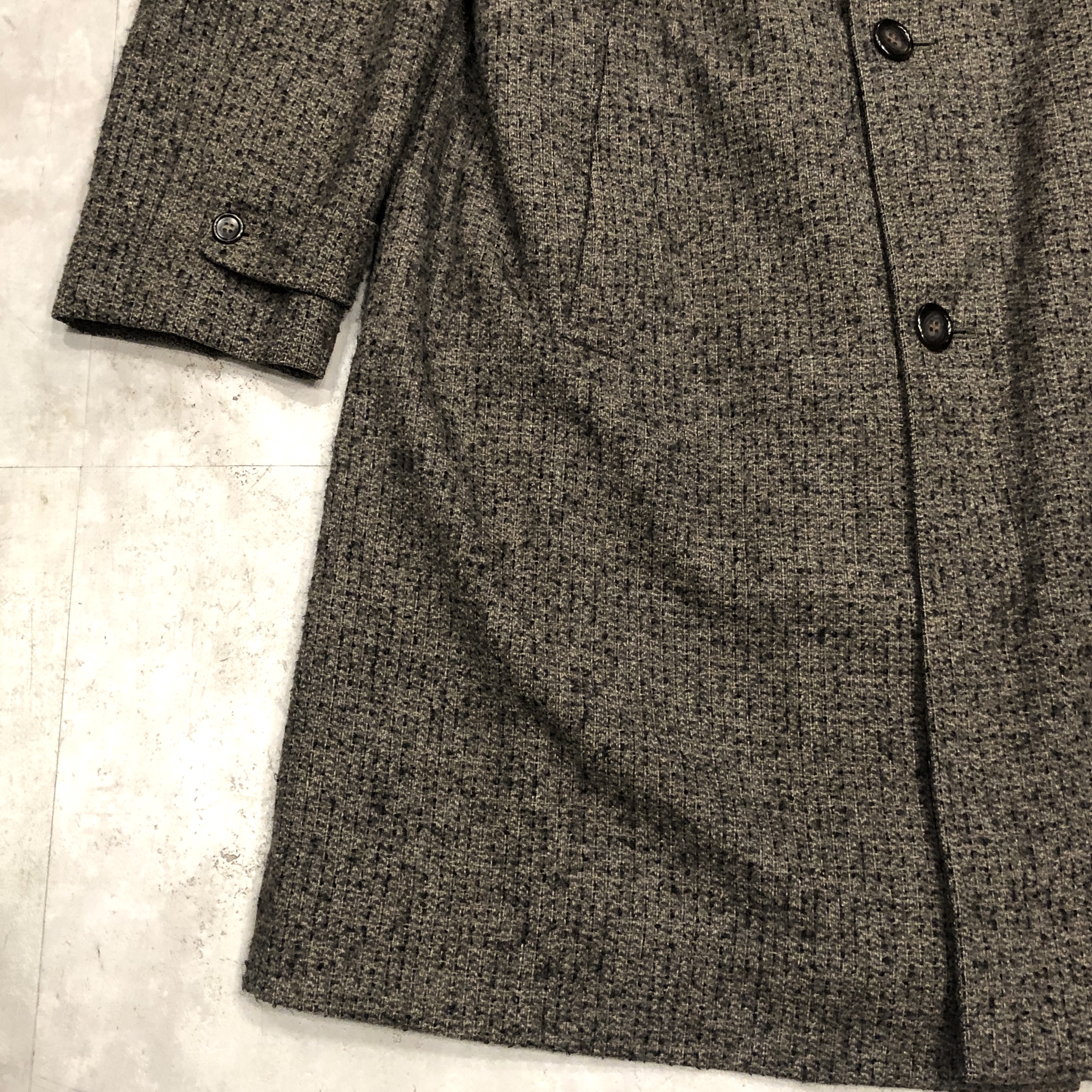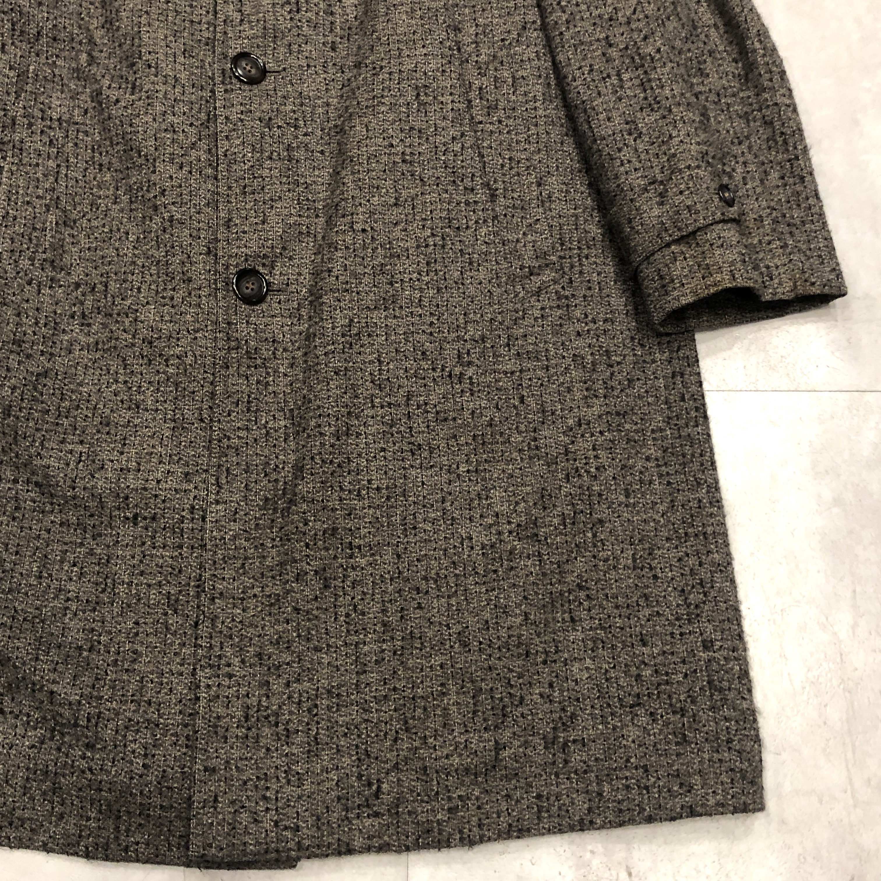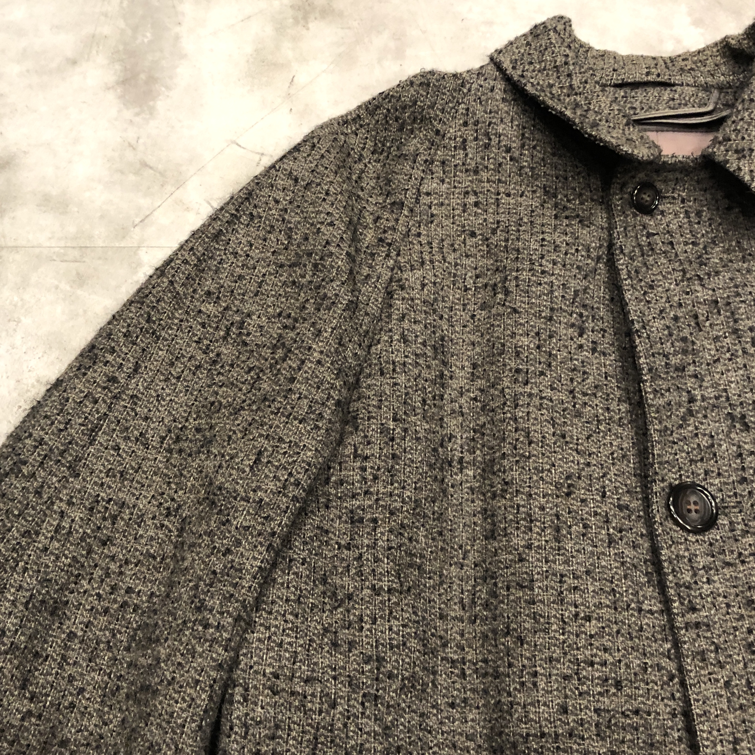 - アメリカはミネアポリスの老舗高級衣料店 Juster’s が別注したウールコートが入荷しました。まず目を奪われるのは、ヴィンテージ特有の奥行きあるブークレ調ヘリンボーンのような独特の表情。温かみのあるグレー×ブラックの混色で、光の加減によって陰影が変わるとても良い生地です。内側にはアメリカらしい遊び心を感じる取り外し可能なチェック柄ライナー(ジッパーは年代の古いTALON)。この仕様が残っている個体は本当に珍しいです。ライナーを外すと、上品なグレイッシュピンクの総裏が現れ、コート単体としてもぐっと洒落た雰囲気を纏います。ショルダーはラグラン寄りのゆとりある袖付けで、着る人の体型を選ばない美しいAライン。柔らかな冬の空気を含むようなシルエットで、クラシックと余裕が共存した、まさに“大人のヴィンテージ”。古いアメリカンコートに特有の、過剰すぎない上品なボリューム感も魅力のひとつです。シンプルな装いにさらりと羽織るだけで、ぐっと雰囲気の出る珠玉のヴィンテージコートです。