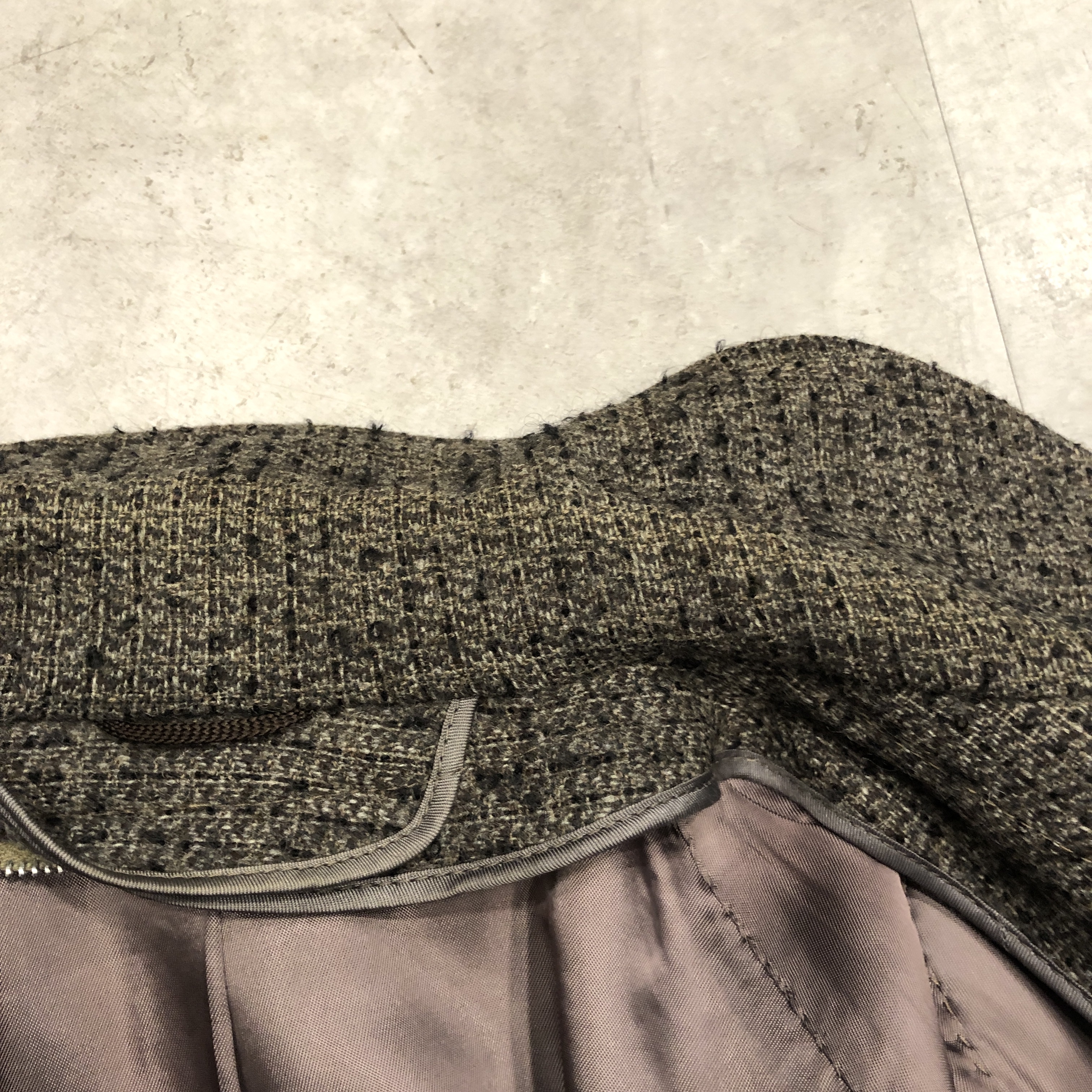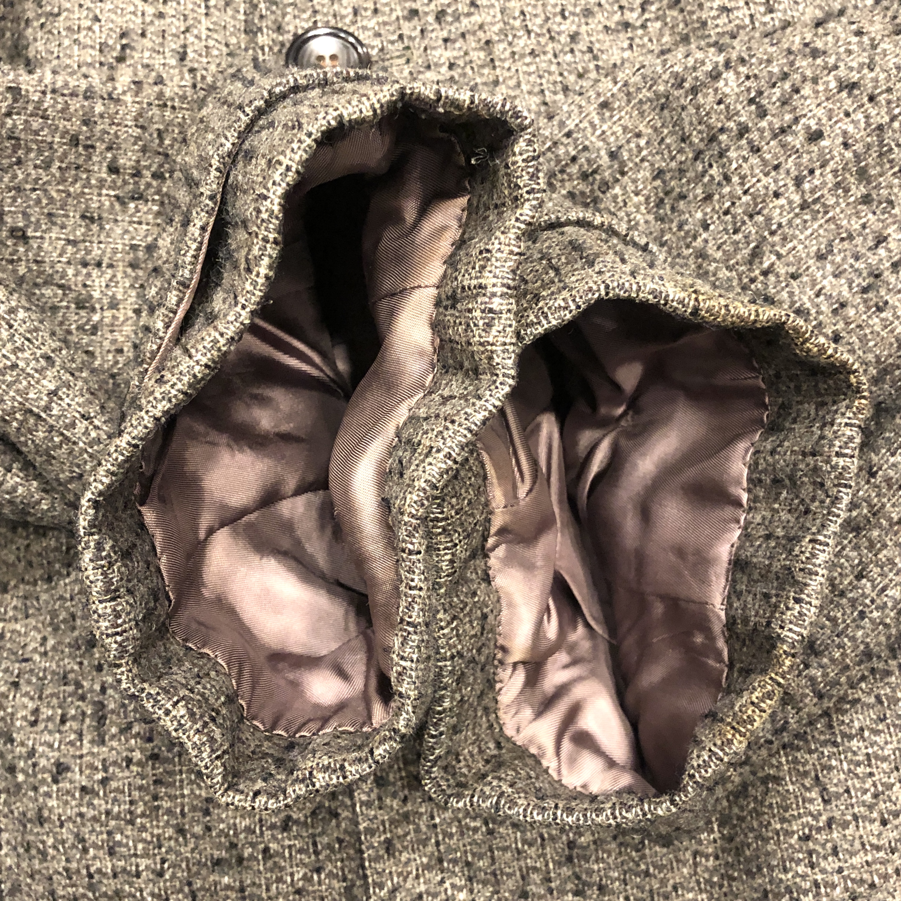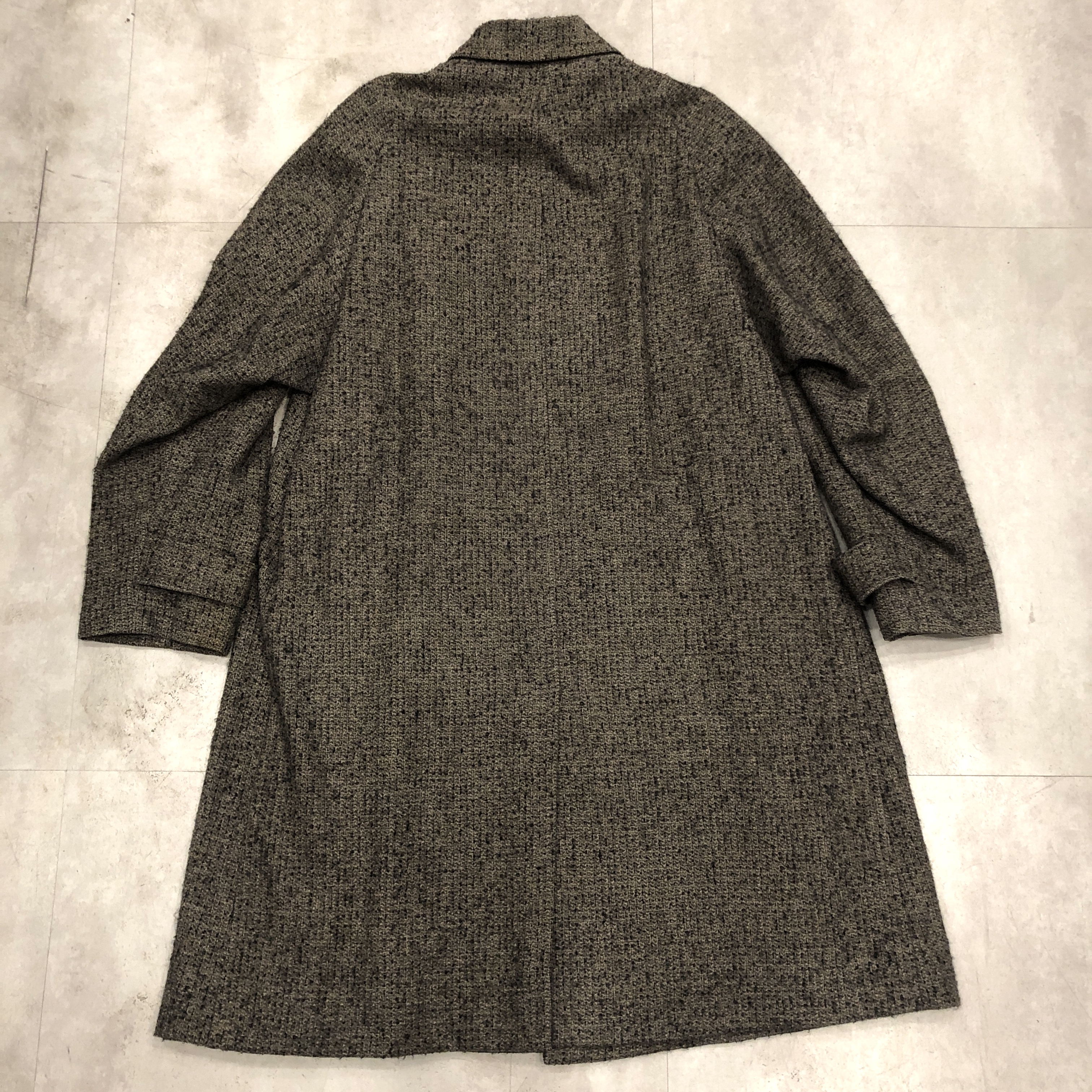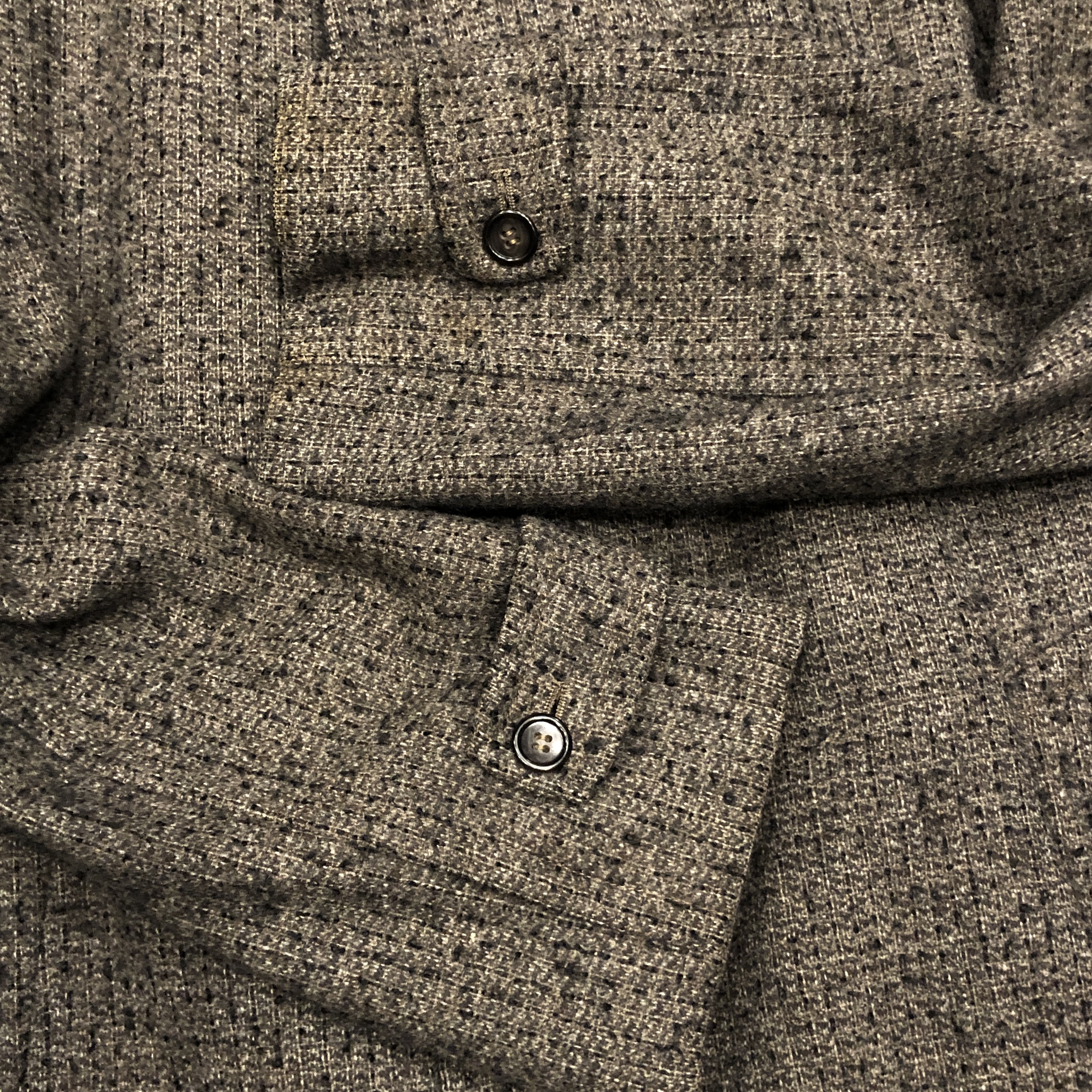 - アメリカはミネアポリスの老舗高級衣料店 Juster’s が別注したウールコートが入荷しました。まず目を奪われるのは、ヴィンテージ特有の奥行きあるブークレ調ヘリンボーンのような独特の表情。温かみのあるグレー×ブラックの混色で、光の加減によって陰影が変わるとても良い生地です。内側にはアメリカらしい遊び心を感じる取り外し可能なチェック柄ライナー(ジッパーは年代の古いTALON)。この仕様が残っている個体は本当に珍しいです。ライナーを外すと、上品なグレイッシュピンクの総裏が現れ、コート単体としてもぐっと洒落た雰囲気を纏います。ショルダーはラグラン寄りのゆとりある袖付けで、着る人の体型を選ばない美しいAライン。柔らかな冬の空気を含むようなシルエットで、クラシックと余裕が共存した、まさに“大人のヴィンテージ”。古いアメリカンコートに特有の、過剰すぎない上品なボリューム感も魅力のひとつです。シンプルな装いにさらりと羽織るだけで、ぐっと雰囲気の出る珠玉のヴィンテージコートです。