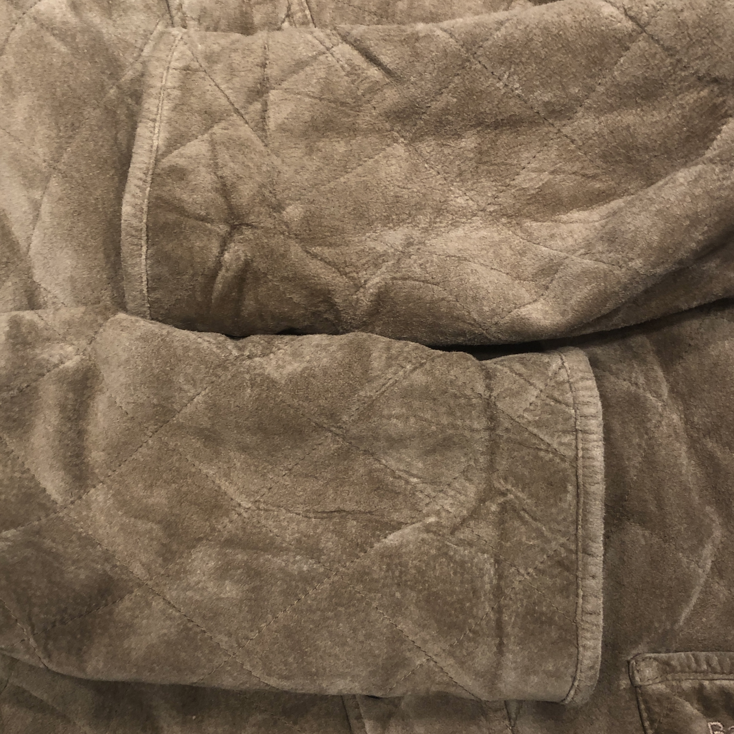 スエード特有の色ムラやアタリが、まるで古い英国カントリーの空気をまとっているかのようで、ただのキルティングでは絶対に出せない質感。