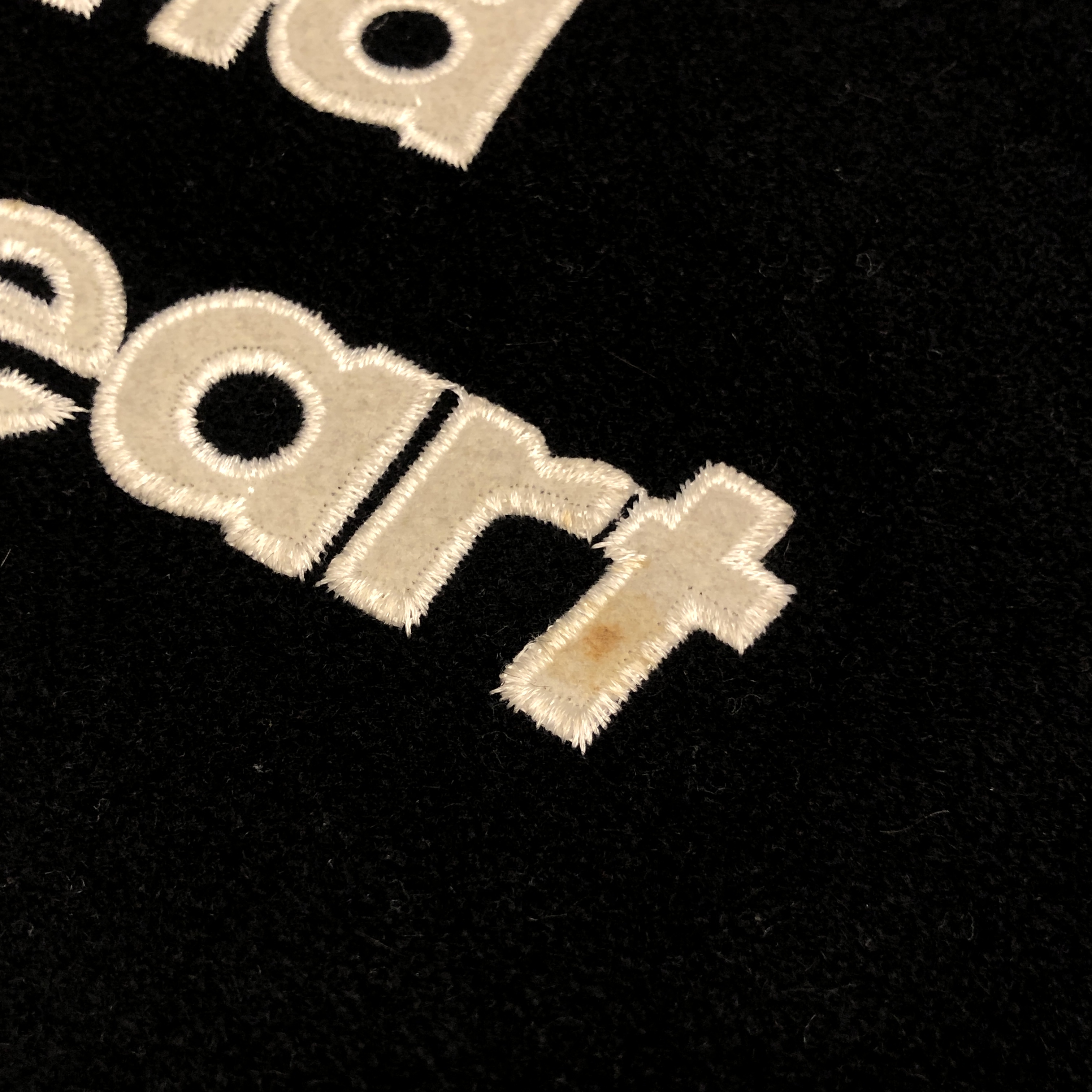 まず目を惹くのは、胸に大きく配された “Vanguards” のフエルトワッペン。アメフトをモチーフにしたクラシックな意匠は、当時の IVY & アメリカンカジュアルへの強い憧れをそのまま映したような存在感です。背面にはブランドの象徴的なスローガン “for the young and the young-at-heart” のステッチ。VAN がただのブランドではなく “カルチャー” だったことを改めて感じさせてくれる、非常に良いディテール。