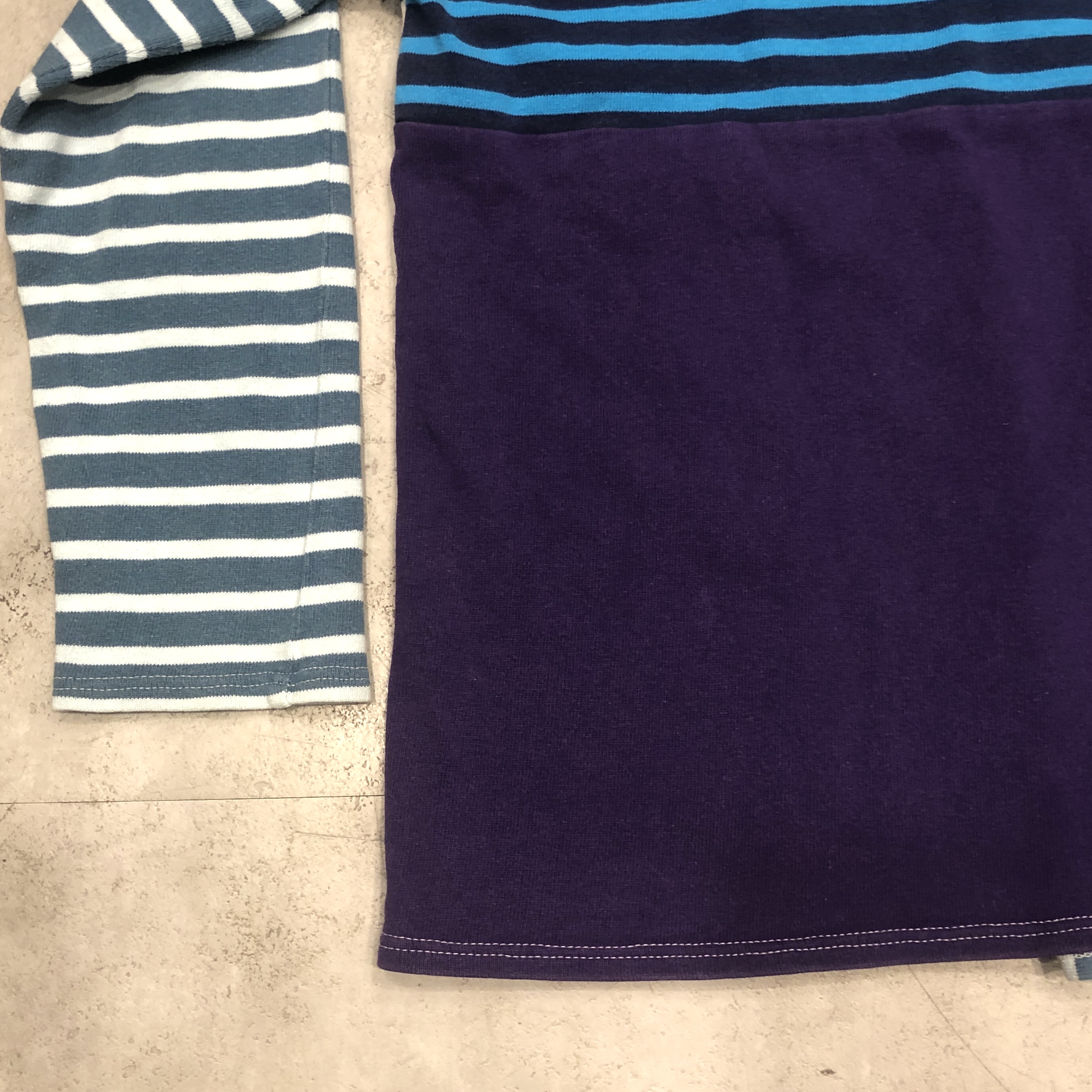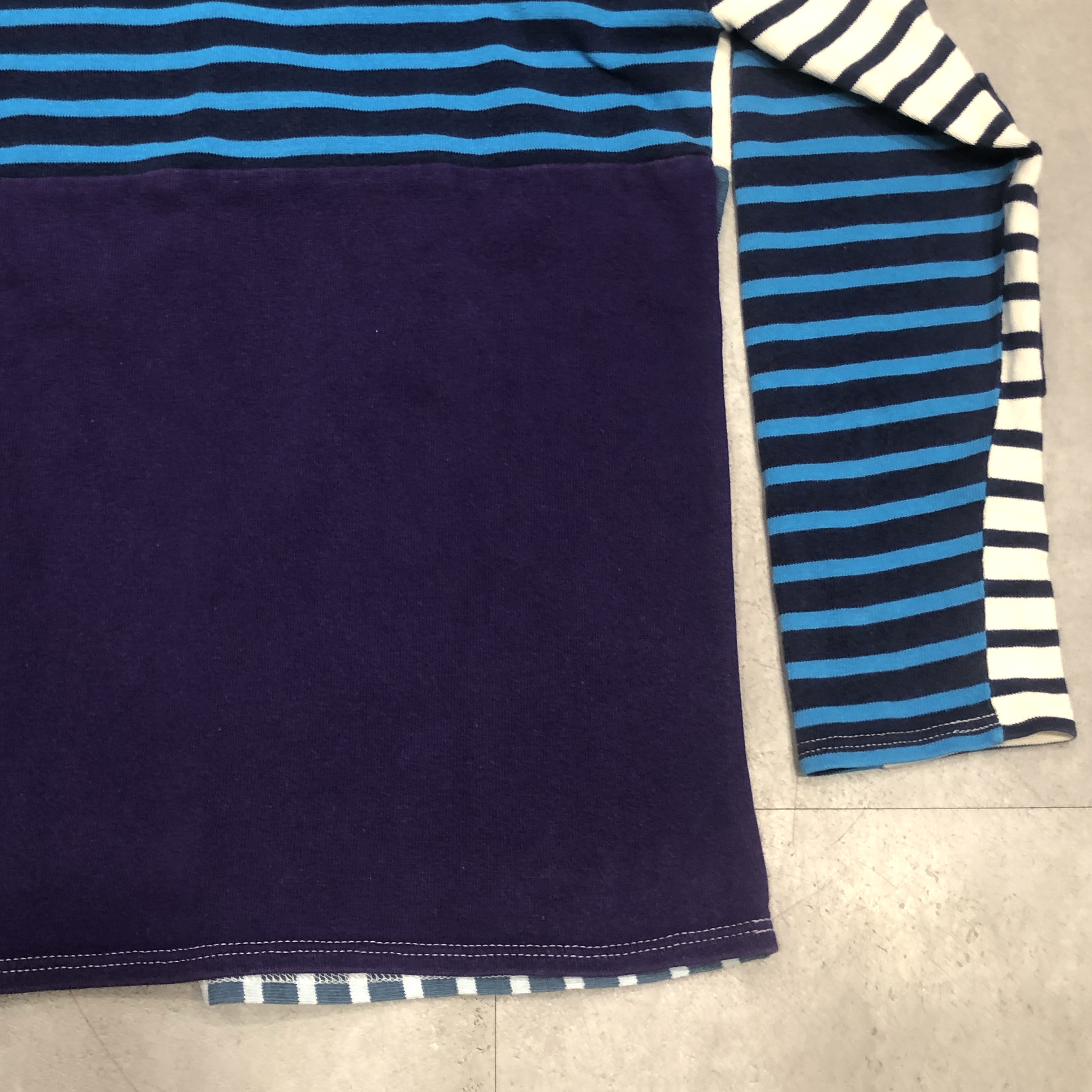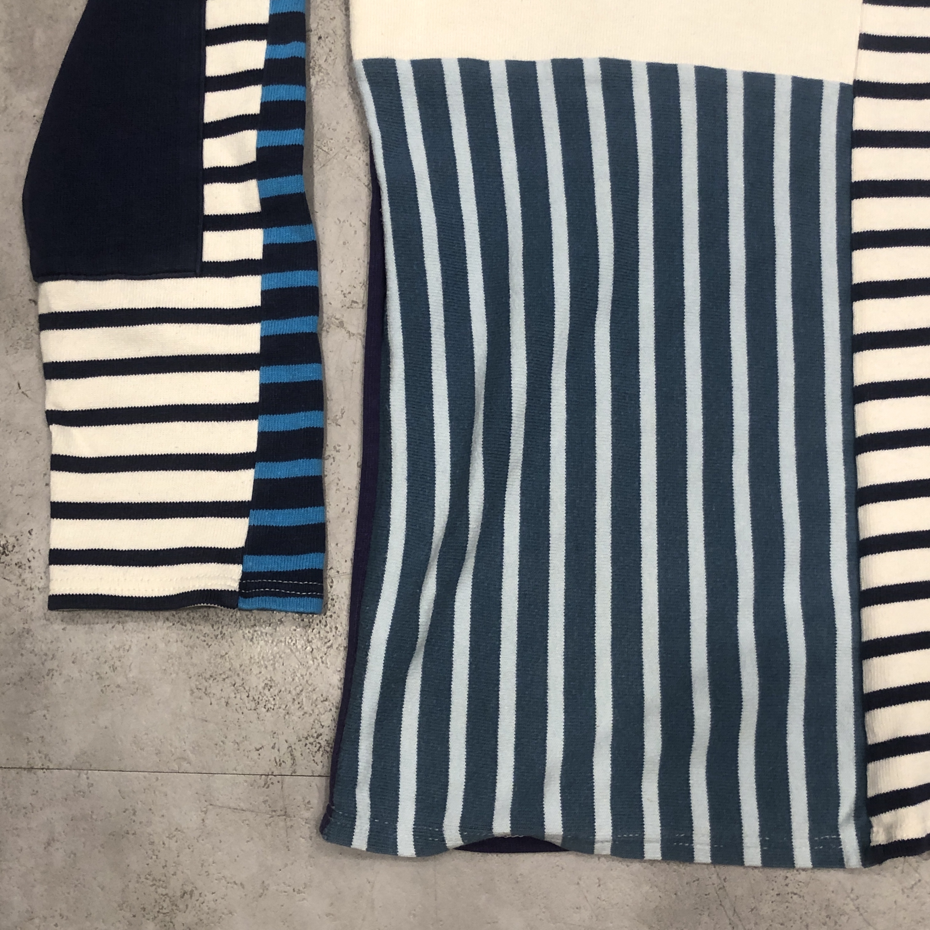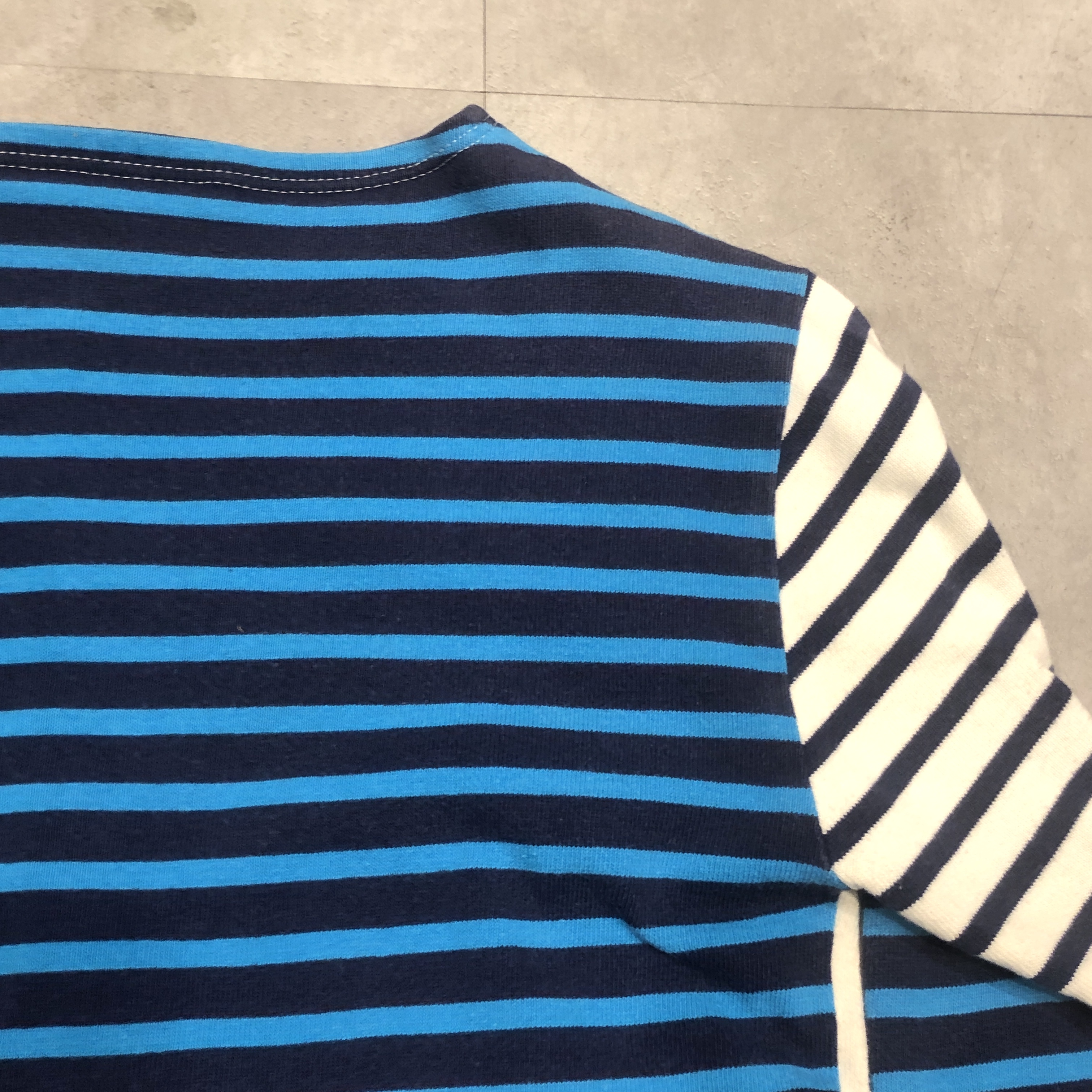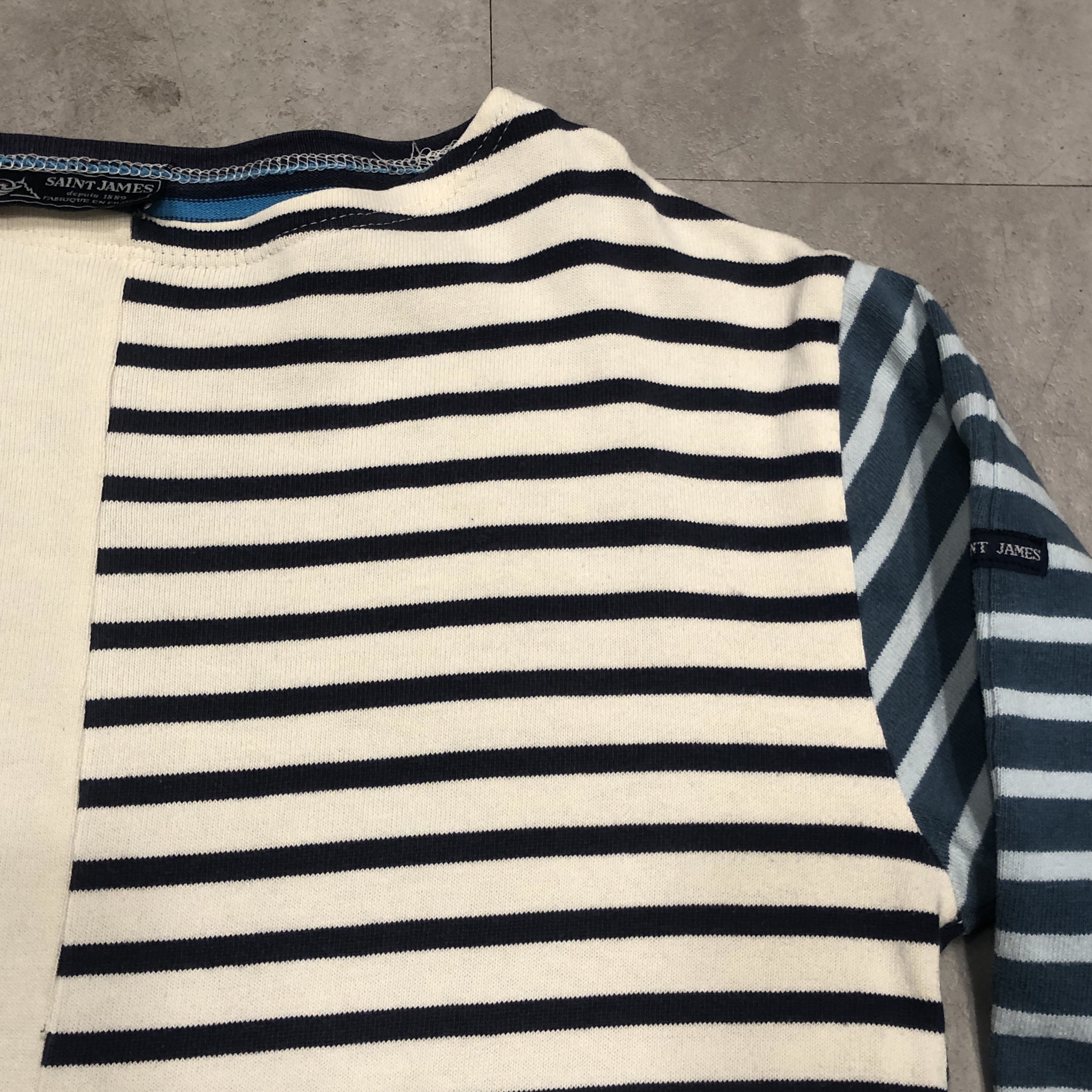 そんなSAINT JAMESが2000年にミレニアムを記念して特別にリリースした限定モデルがこちら。異なるカラー、幅のボーダーと無地を組み合わせたパッチワークデザインは、クラシックなバスクシャツにモダンなエッセンスを加えた唯一無二の一着。