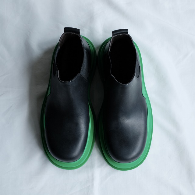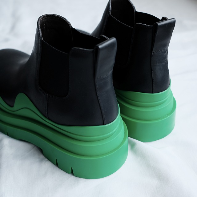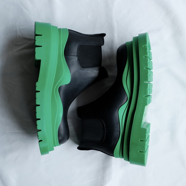 カセットやパドルブーツ等様々な名作がある中でもかなりインパクトのあるデザイン。うねりのある極厚のラバーソールはインパクト抜群で、様々なカラーが発売されましたが、こちらはボッテガヴェネタのイメージカラーであるグリーン。