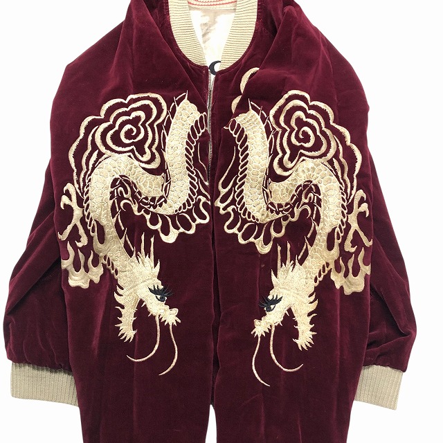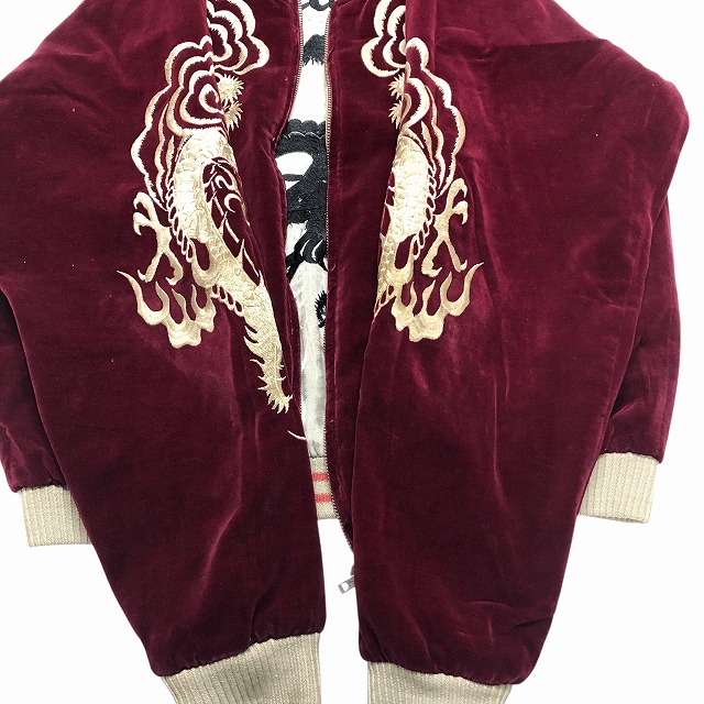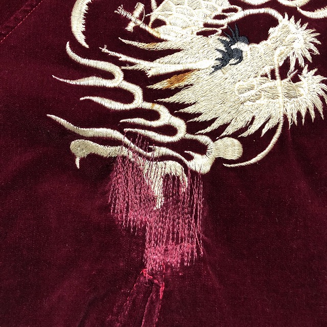「別珍、3頭龍/鷲、黒刺繍、ジッパー不良」